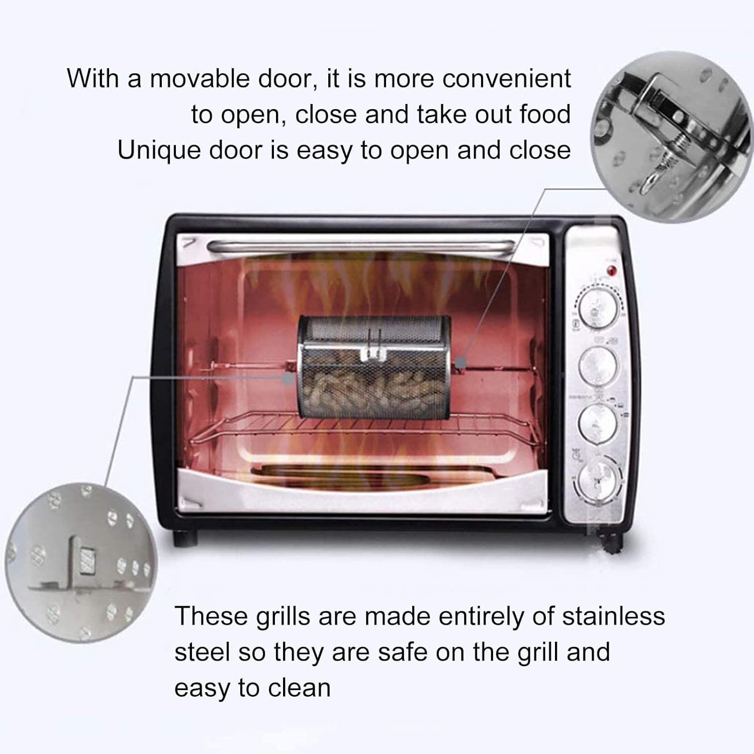 【Easy to Clean】Easy to clean the rotisserie basket with the dishwasher, it will dry automatically in a short time. The grill drum is about 14X18cm.