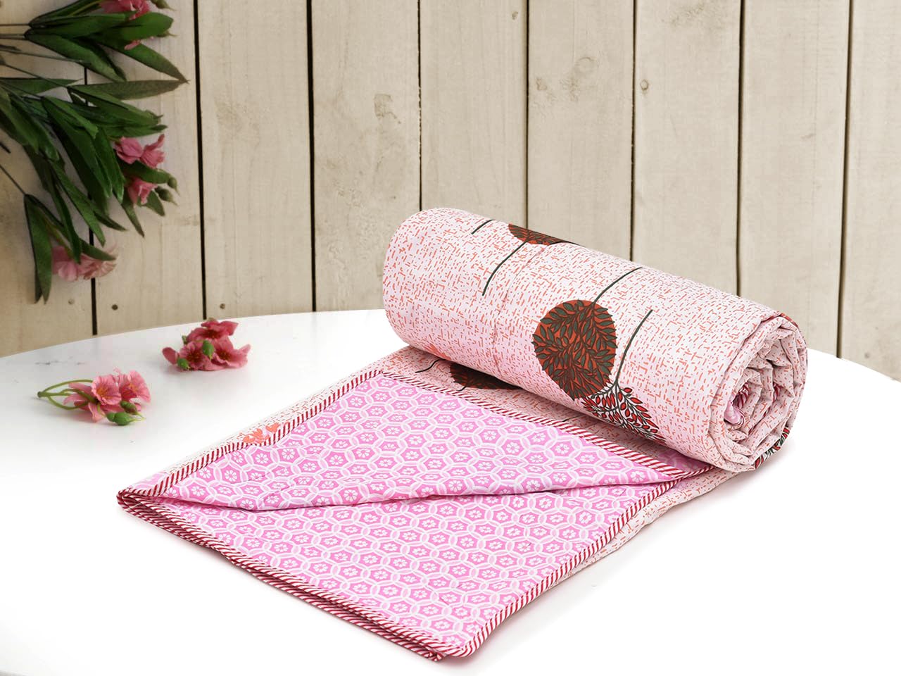 RRC Dohar Double Bed Cotton 100% | 150GSM Quilt Blanket for Summer | 243 x213 cm Reversible and Cozy AC Comforter Double Bed Floral Design Dohar | Ideal for Gifting