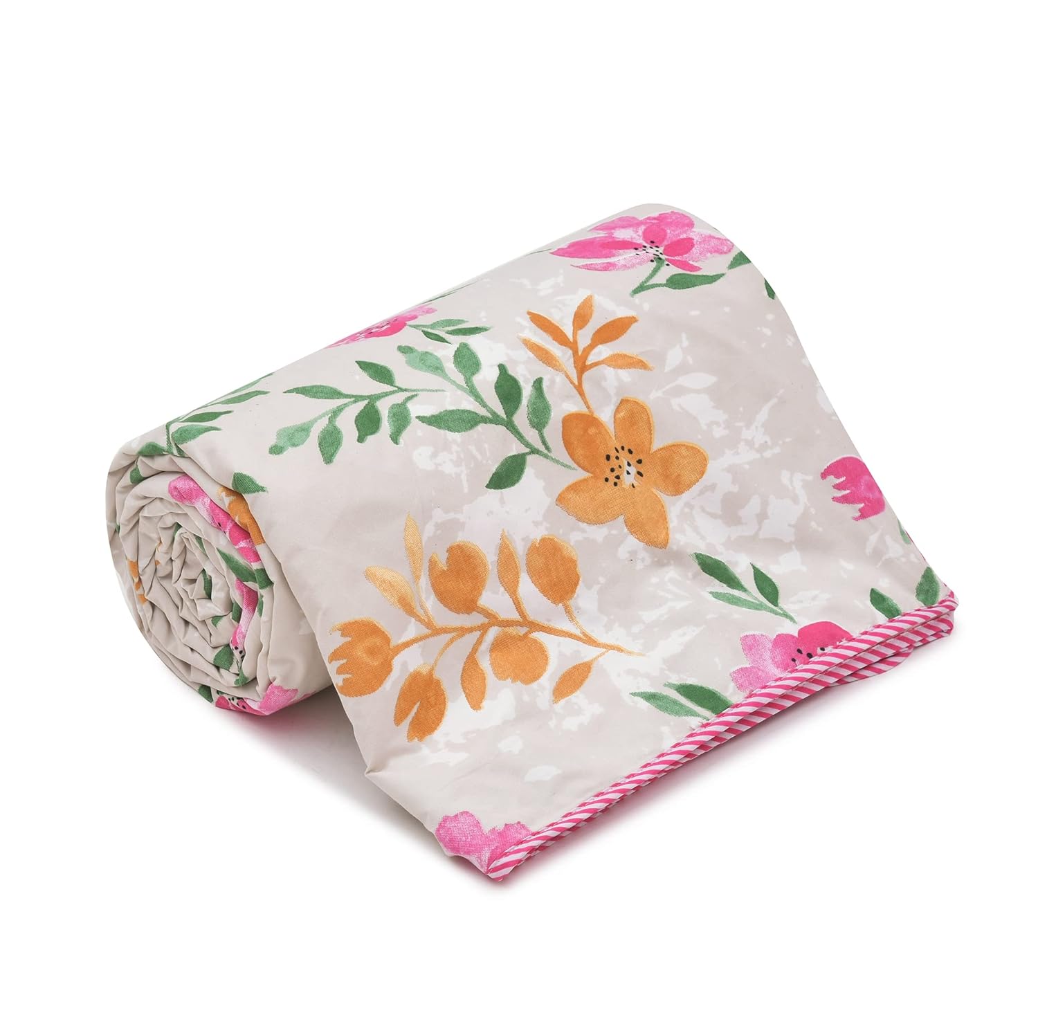 3-Layer Comfort: Made with soft microfiber, breathable cotton, and cozy flannel for ultimate comfort and warmth in all seasons, especially ideal for AC rooms and light winter use.Reversible Design: Stylish white & pink leaf pattern with reversible sides adds charm and versatility to your bedroom décor, allowing for easy style changes anytime.