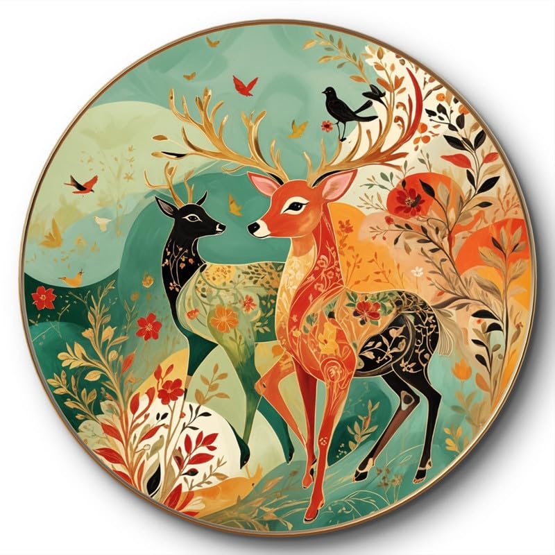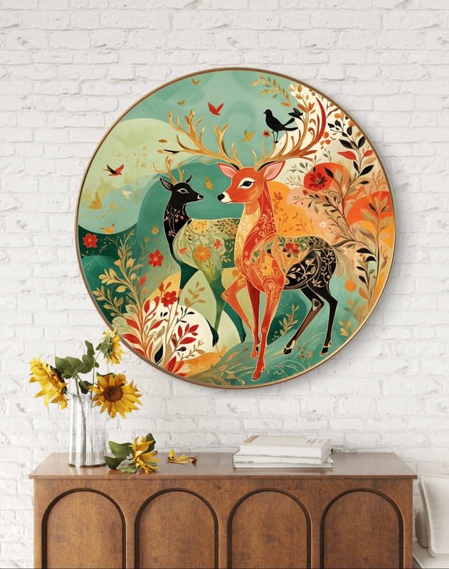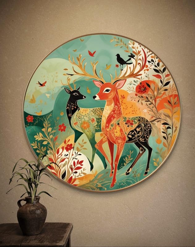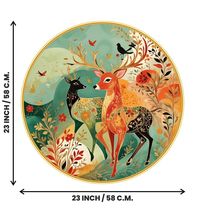 Generic Name : SAF Large Round wildlife deer Wall Painting with golden frame Vinyl Sparkle laminated||Home décor Painting,Living Room, Bedroom,Office Room Decor – Painting for Wall Decoration GR-08