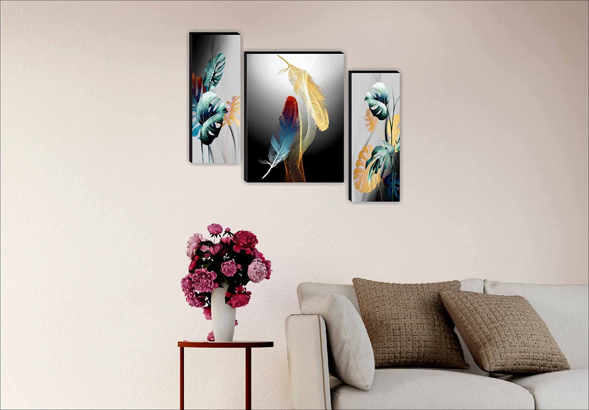 SAF paintings Set of 3 Vibes and Flower Modern Art UV Textured Home Decorative Gift Item Self Adeshive Painting 18 Inch X 12 Inch SANFJM30977