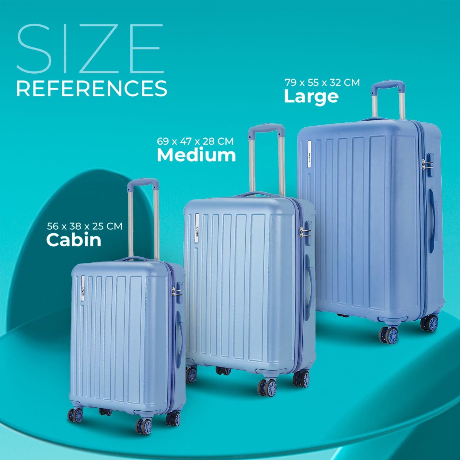 Safari Linea 8 Wheels 56 Cms Small Cabin Trolley Bag Hard Case Polycarbonate 360 Degree Wheeling System Luggage, Trolley Bags for Travel, Suitcase for Travel, Pearl Blue