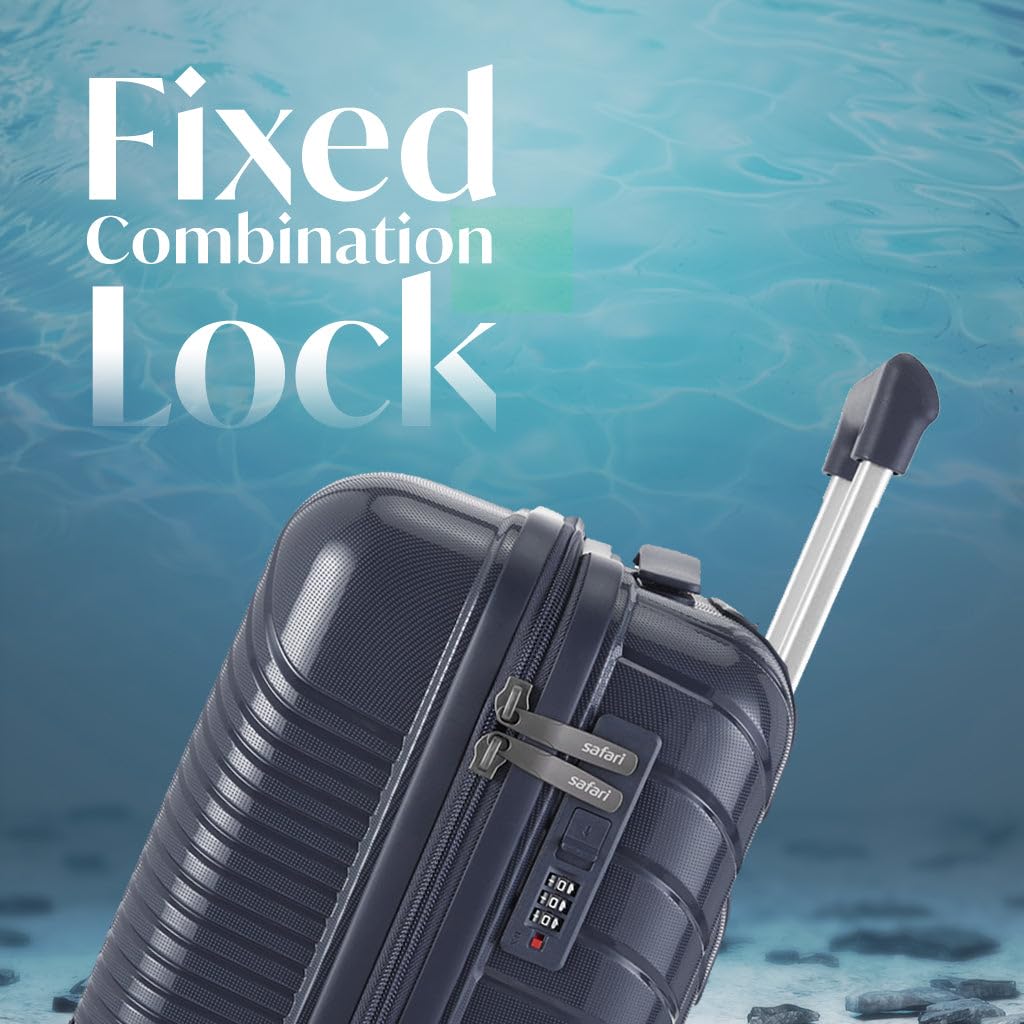 Safari Polycarbonate Hard Shell Atlantis 8 Wheels, Anti-Theft Zipper (Cabin & Check-in) Trolley Spinner Luggage Set of 3, 59Cm, 69Cm & 79Cm, Small, Medium, Large (Blue)