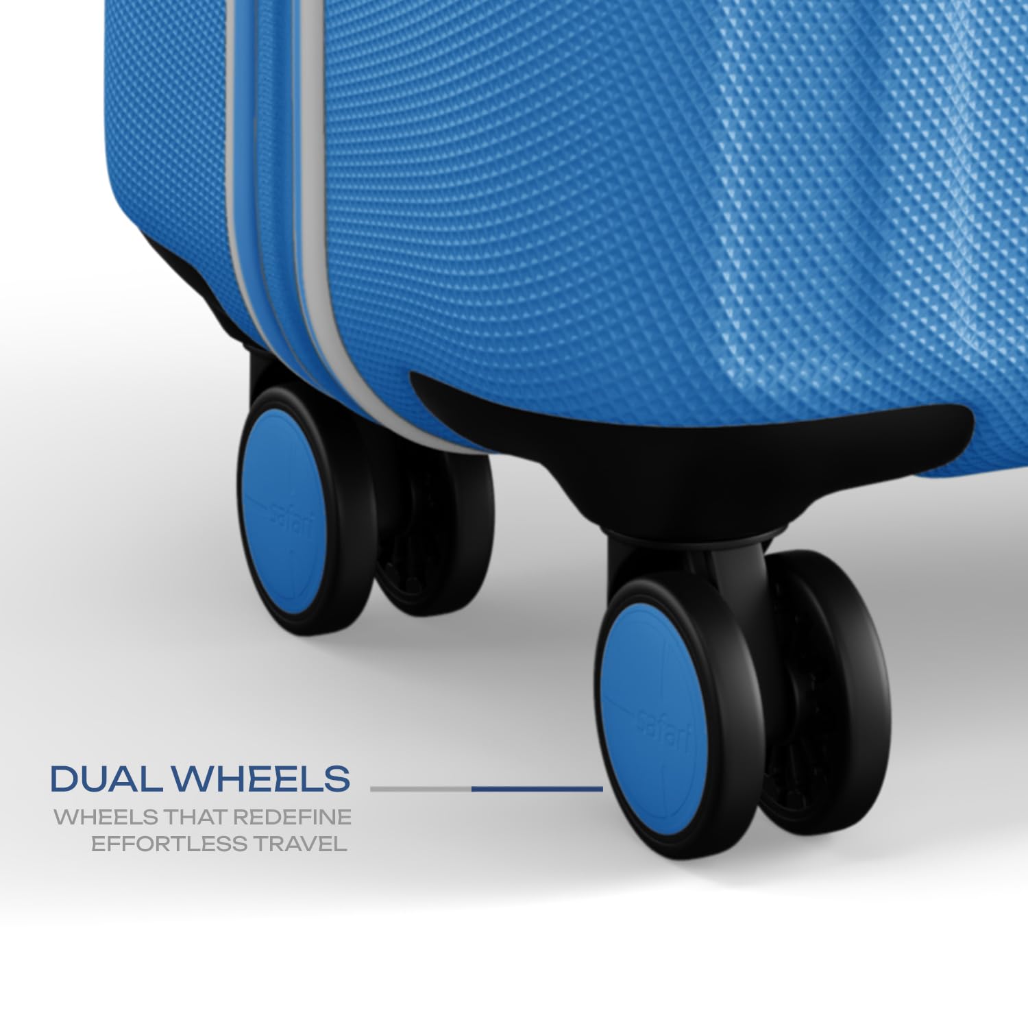 Elevate your travel game with Safari Ray Neo – a luggage that turns heads, wherever you go! The luggage’s half-and-half dual-tone beading adds a touch of personality. The suitcase features perfectly color-coordinated zippers that blend seamlessly with the luggage body, creating a sleek, polished look. Crafted from premium unbreakable polycarbonate, this luggage is designed to withstand the rigors of modern travel. Glide through your travels with double the ease with 8-smooth rolling, all-terrain, 360 degree spinner wheels. The trolley bag is equipped with a built-in 3-digit combination lock to keep your belongings super secure. The 3 years International Warranty ensures we have you covered in every adventure.