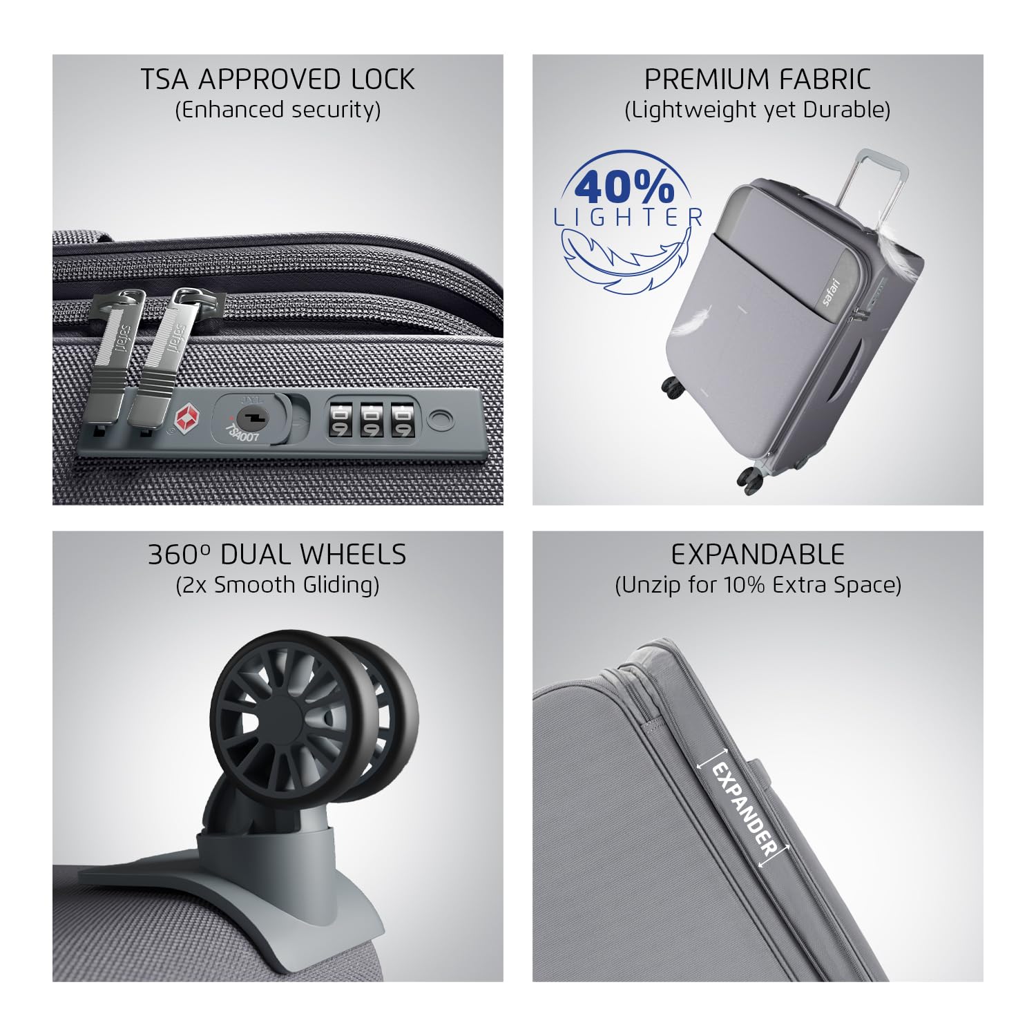 Exceptional Polyester Craftsmanship: Meticulously fashioned from premium polyester fabric is 40% lighter and is still sturdy for heavy use. This lightweight trolley bag not only guarantees remarkable experience but also exudes a luxurious feel. Your travel essentials will remain impeccably protected throughout your journeys.