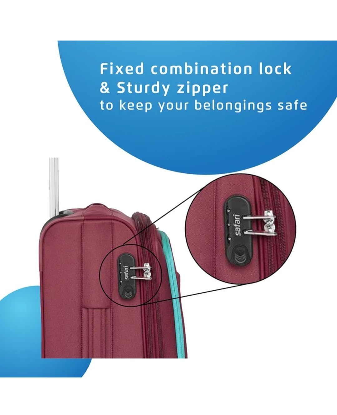 SECURITY FEATURES: Built-in fixed combination lock ensures your belongings remain secure during transit