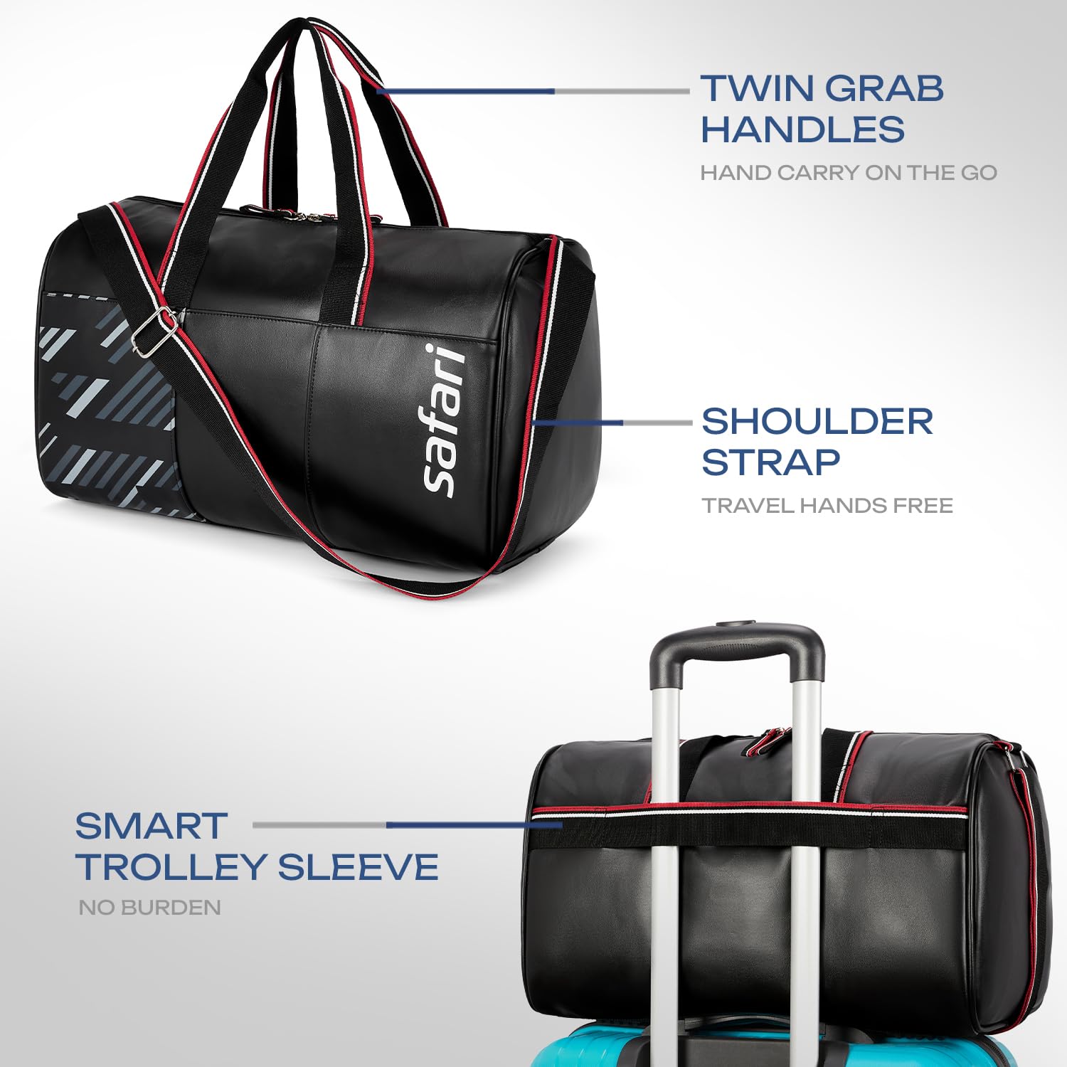 Safari Stash 30L Duffle Bag, Premium Water Resistant Fabric, Multi-Purpose Travel Duffle Bag/Gym Bag for Men & Women, Overnighter Bag, Phantom Black