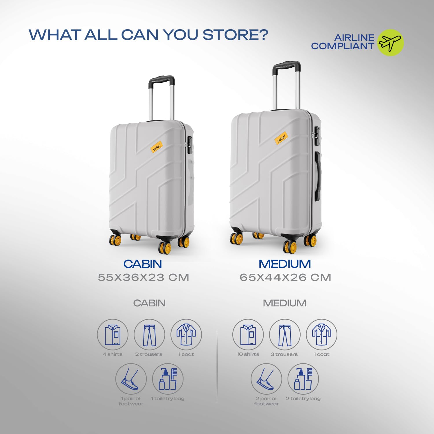 Set of 2 Luggage: This combo consists of carry-on cabin size and medium check-in size suitcases.