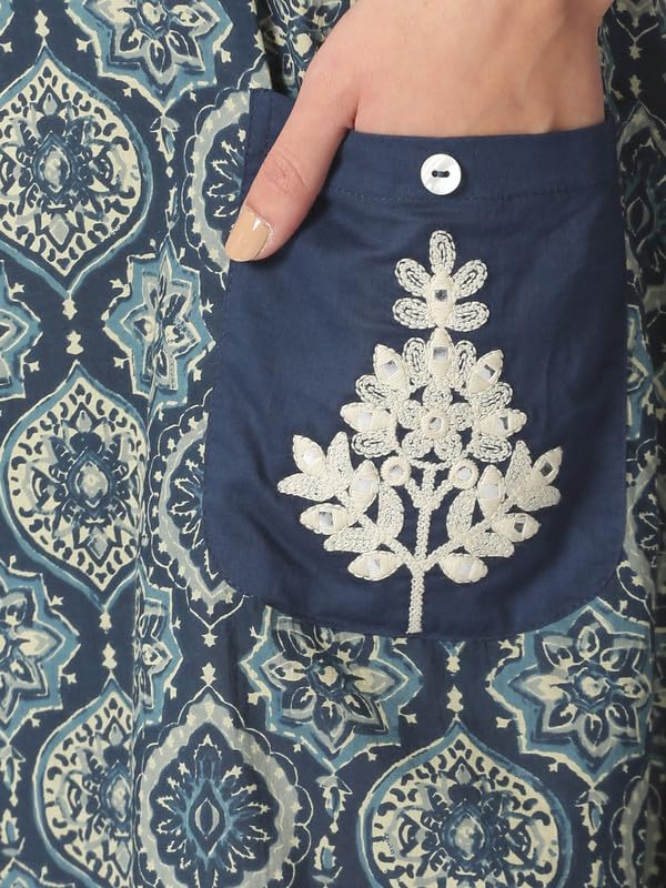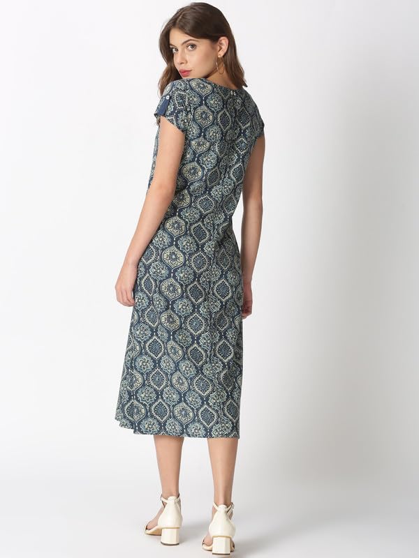 Saffron Threads Red Ethnic Motifs Printed A-line Strappy Dress with Front Pockets