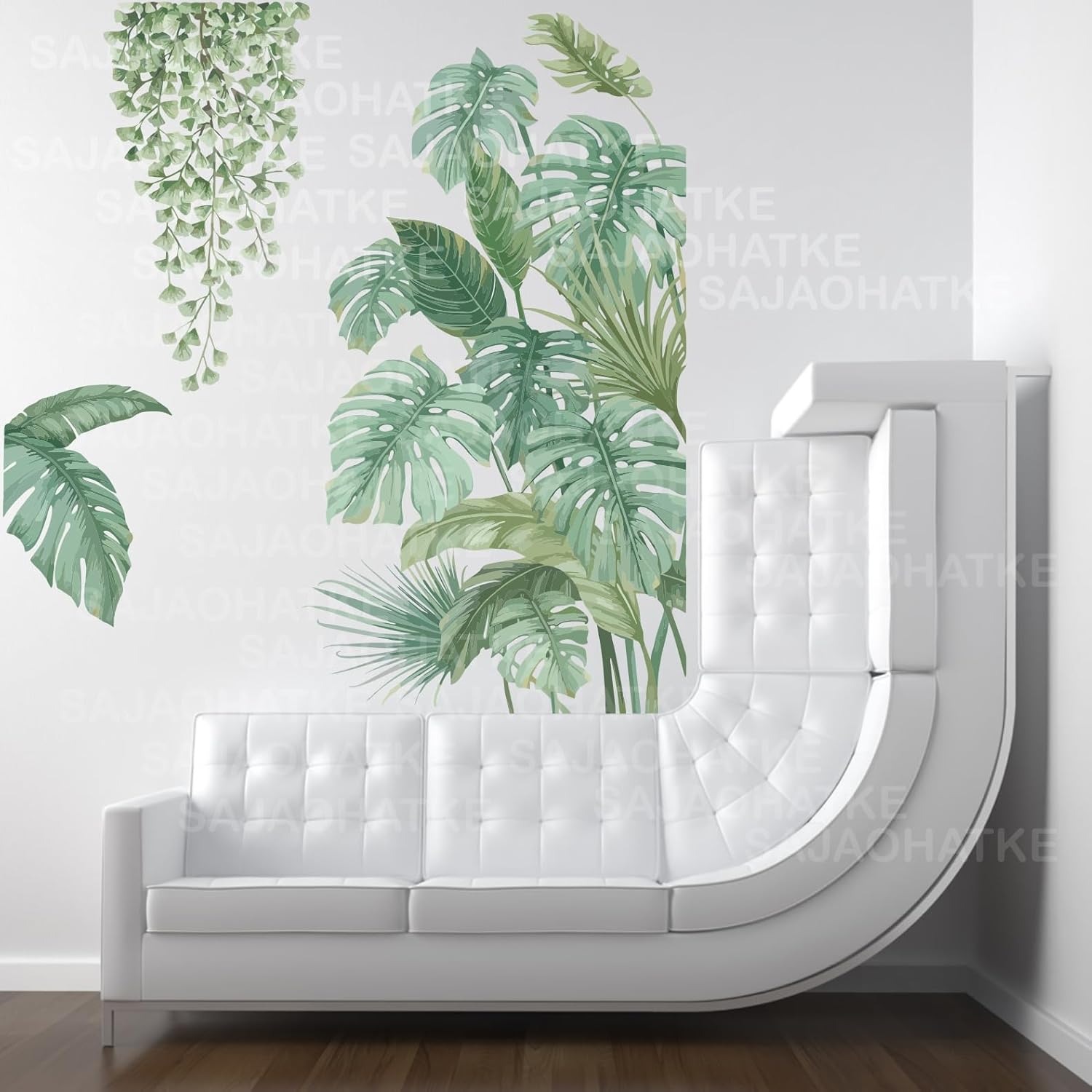 SAJAOHATKE (90×79) Big Size Tropical Leaves Self-Adhesive Natural Wall Sticker Peel and Stick for Living Room Bedroom Removable Sticker