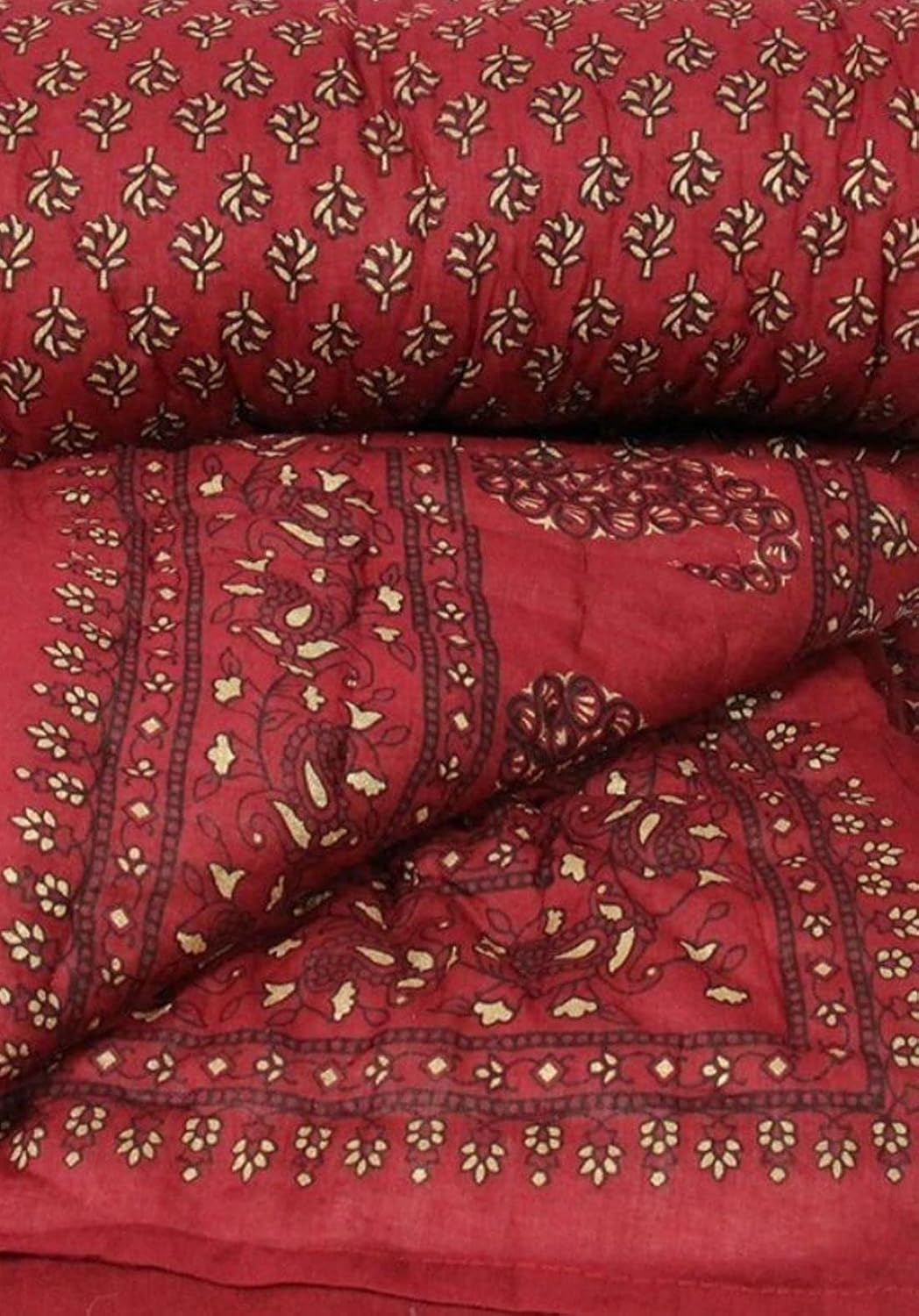SAMRADHI Rajasthani Traditional Famous Jaipuri Beautiful Floral Print in White and Blue Jaipuri Rajai/Razai/Quilt/Comforter/AC Quilt/AC Comforter, Cotton, Lightweight Pack of 1 (Maroon, Single)