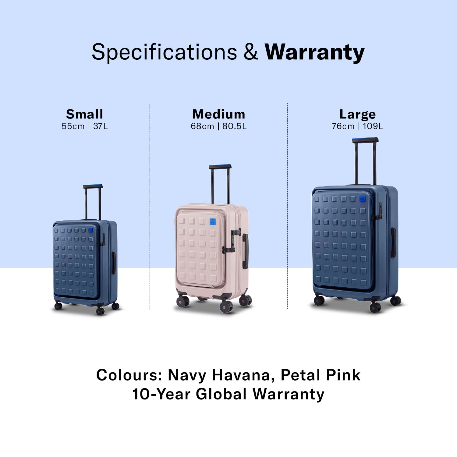 A personalization color kit for you to change the exterior logos, trolley handles and wheel caps to be easily swapped out and interchanged with replacement pieces in different shades.