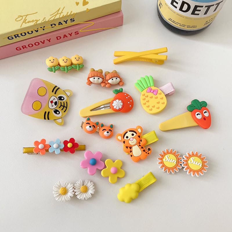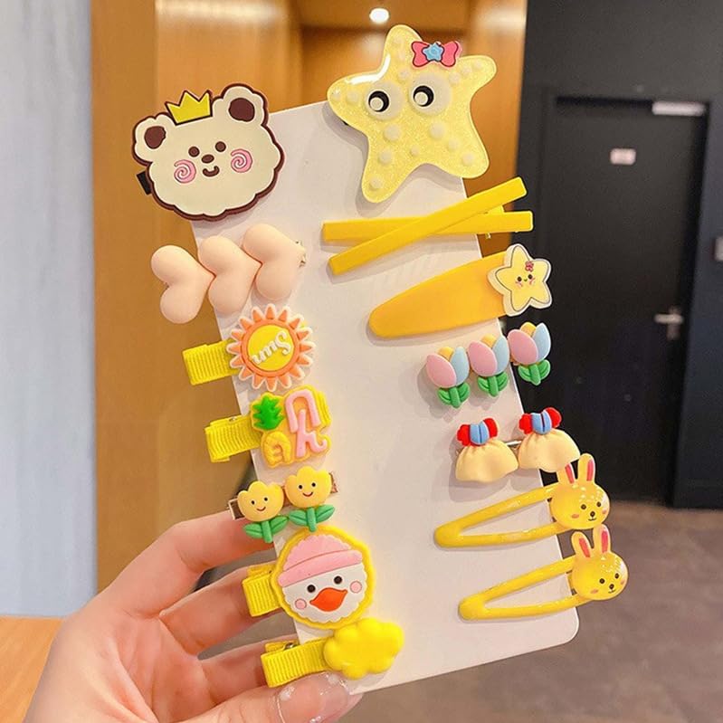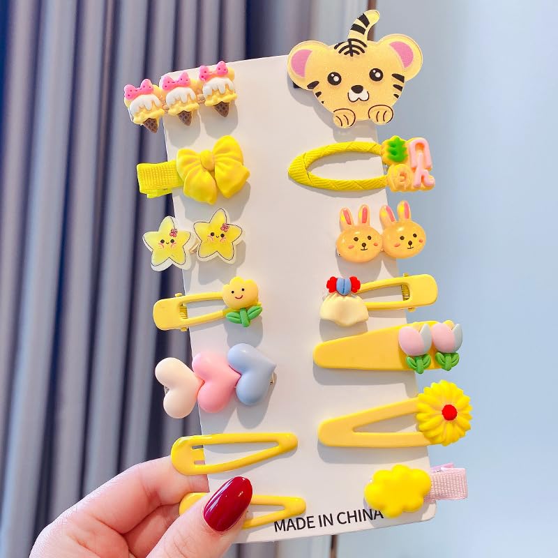 Samyak 14 Pcs Kids Hair Clips Set Cartoon Icecream Cute & Trendy Baby Girls Toddlers Hair Pins Barrettes, Combo of 14 Pcs (Yellow)
