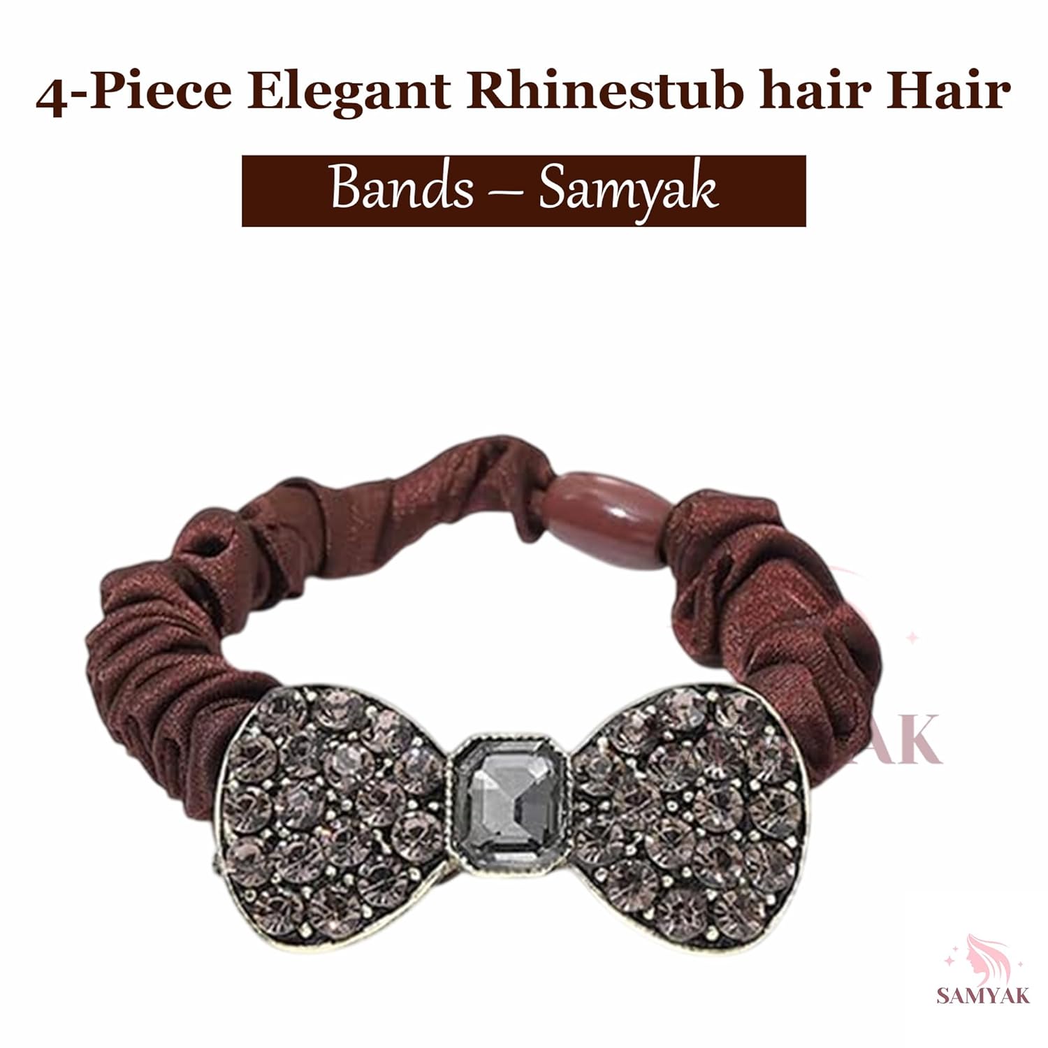 Samyak 4 Pcs Hair Scrunchies Luxury Square Rhinestone Bow Elegant Hair Tie Rubber Bands For Women & Girls Ponytail Holders