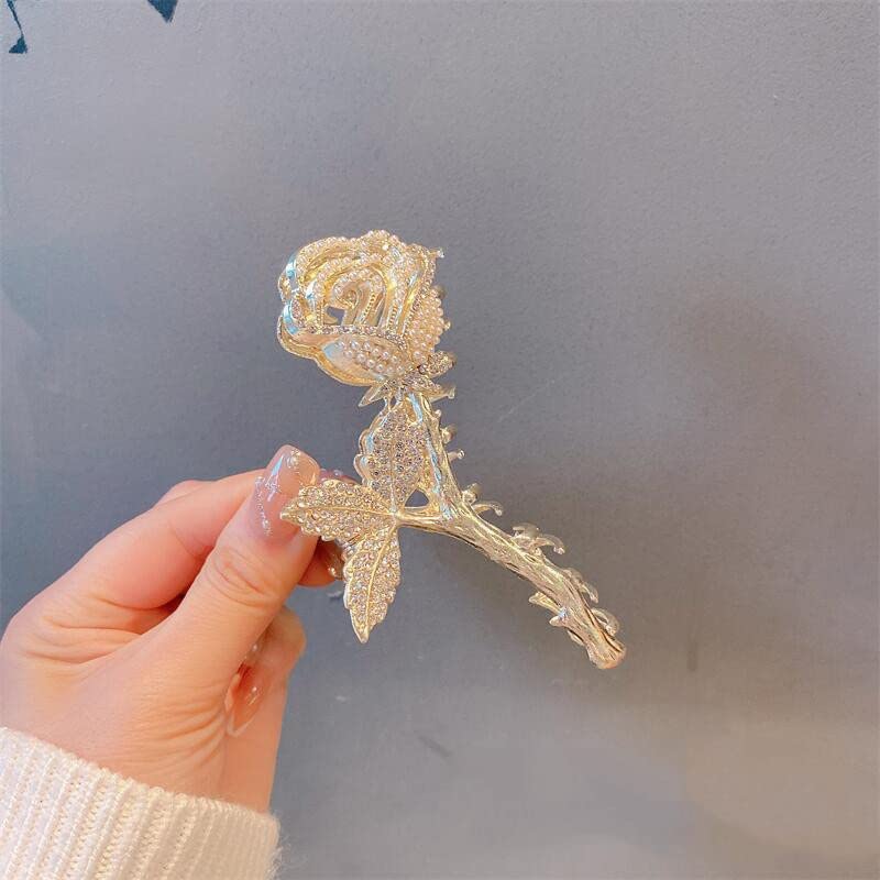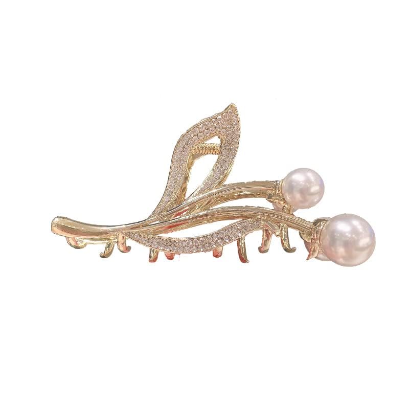 Samyak Luxury Floral Designer Studded Rhinestone & Pearl Hair Claw Clutcher | Clip | Pins | Barrette Jaw Clamp Accessories for Wedding Bridal Women