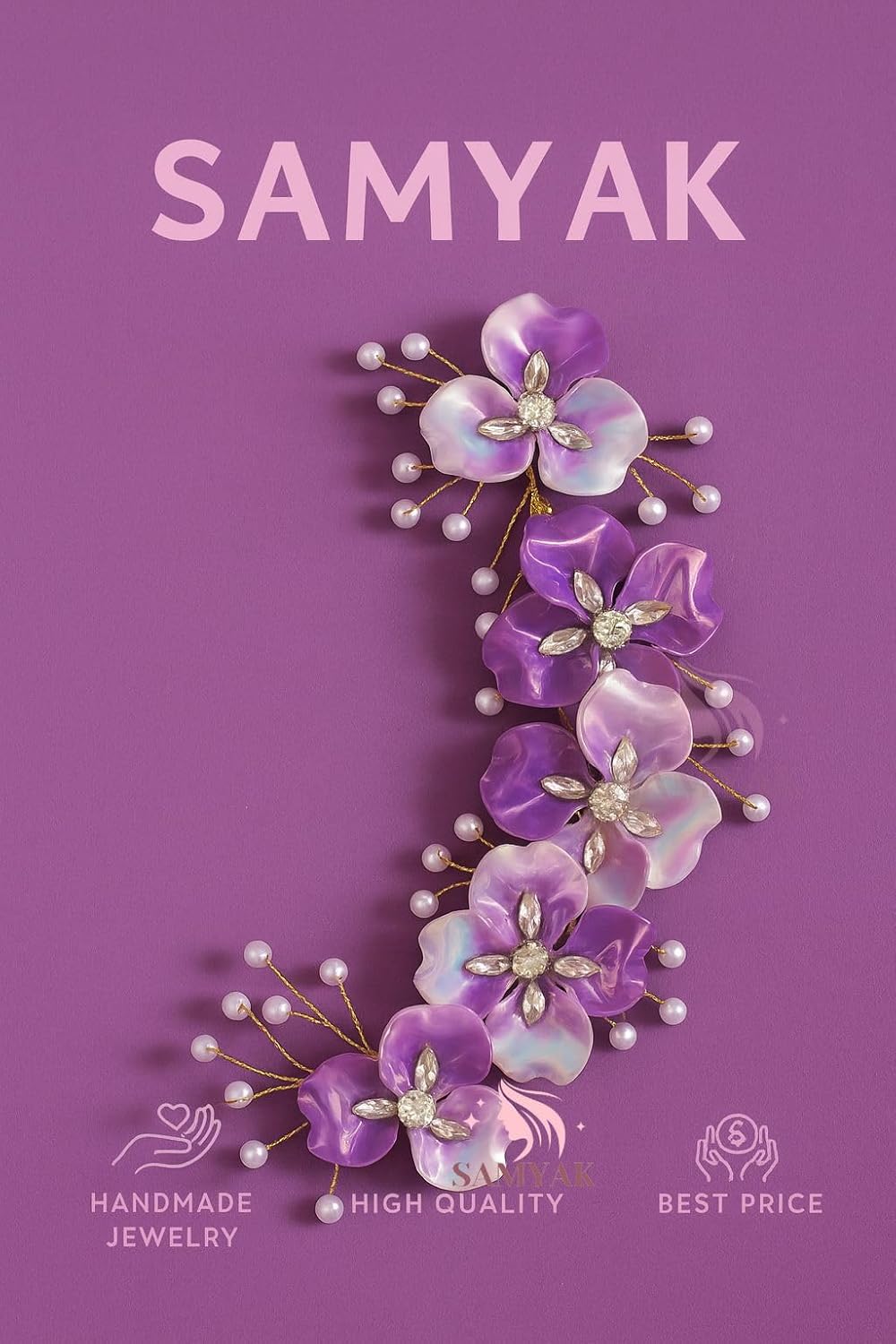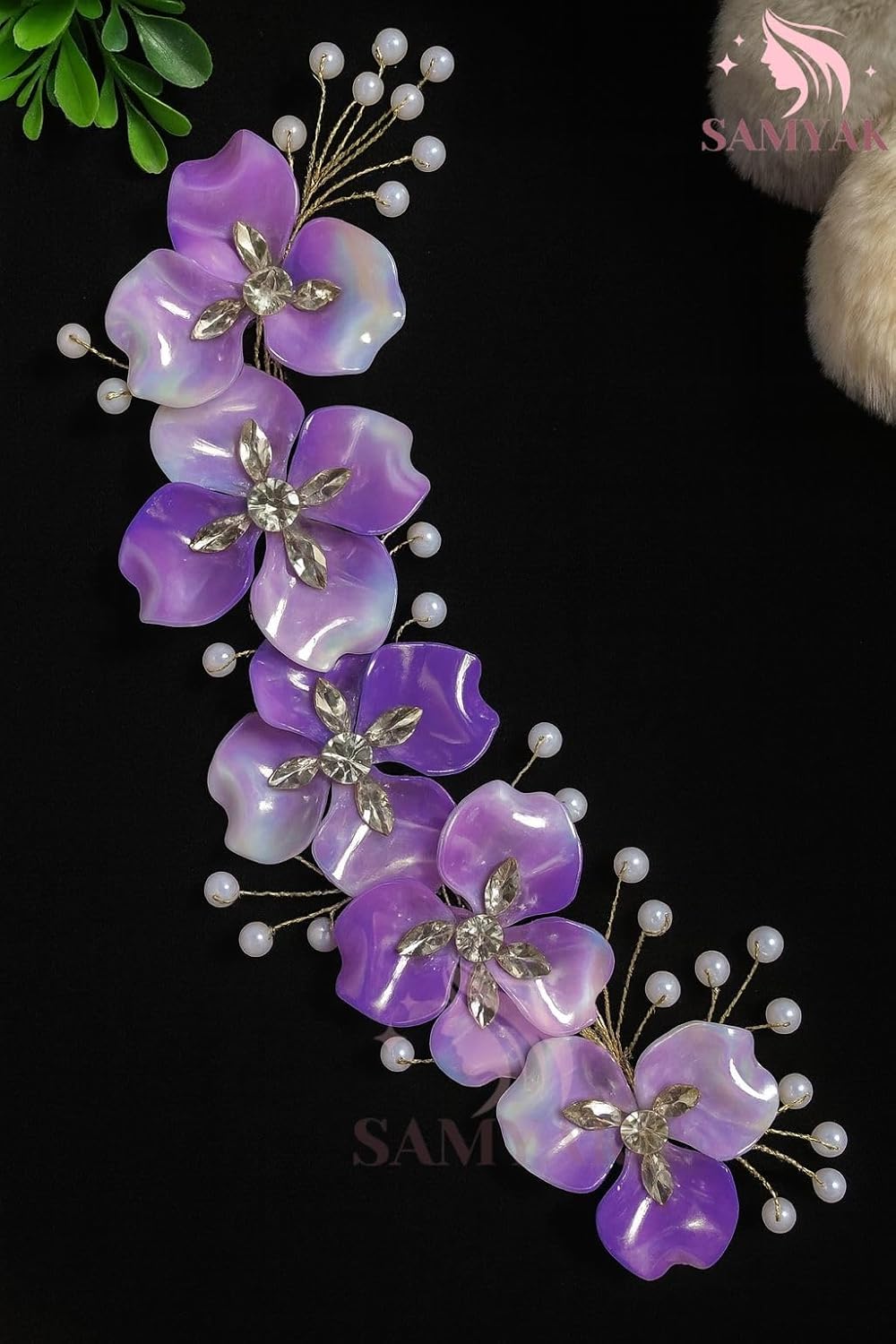 Samyak Wedding Hair Pins Handmade Pearl & Crystal Bridal Tiara Bridesmaid Hair Decoration (Purple)