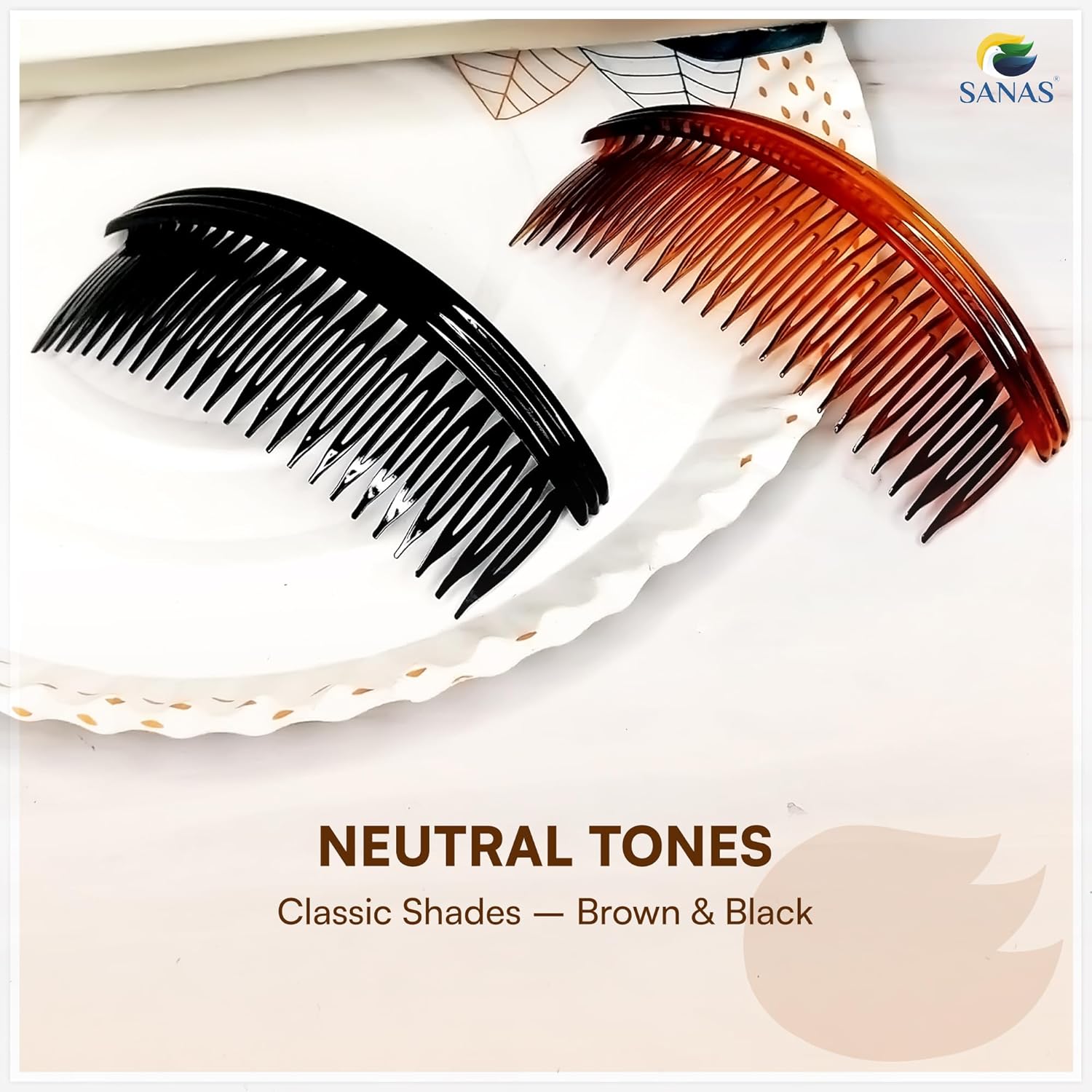 Sanas Comb Clips For Hair For Women Stylish (2Pcs) French Combs Side Clips For Women Hair Tools For Hairstyle Premium Plastic Comb Clip French Hair Pins For Woman For Bun (2Pcs) (Classic Black & Brown)