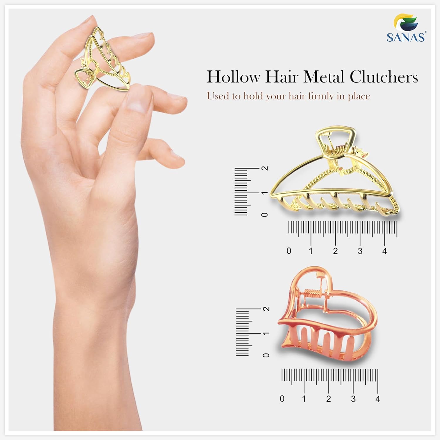 You will get 8 pcs of hollow Hair clips in all assorted designs in one packet per order by Sanas.