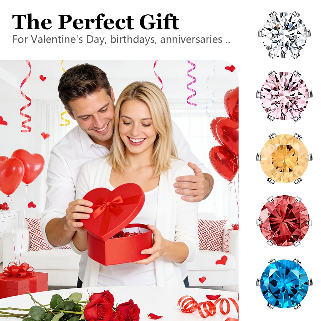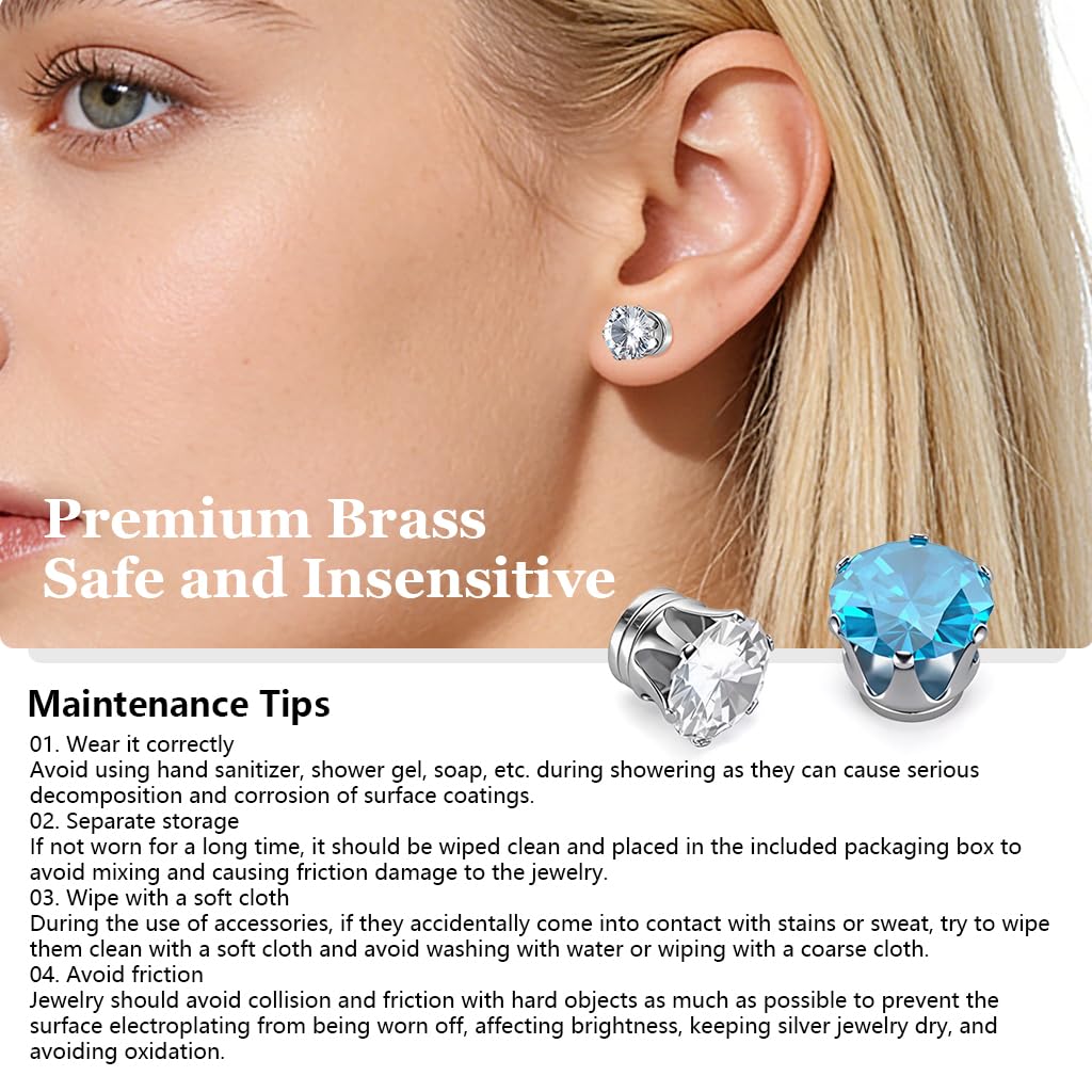 SANNIDHI® 5 Pairs Earrings Set for Women 4/5/6/7/8mm Rhinestone Magnetic Shiny Clip-on Earring Round Cubic Zirconia Stud Earrings for Non-Pierced Ears