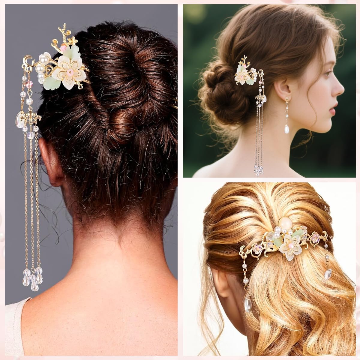 THOUGHTFUL GIFT FOR GIRLS AND WOMEN: Designed with girls in mind, these hair pin for women also make a beautiful accessory choice for women of all ages. The delicate floral motifs and graceful tassels appeal to a wide range of tastes, making them a thoughtful gift for birthdays, parties, or special celebrations.