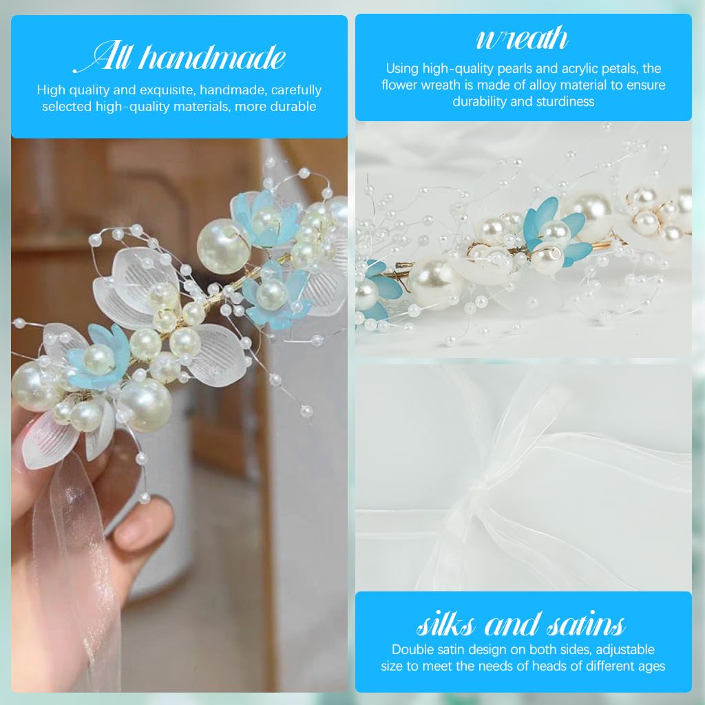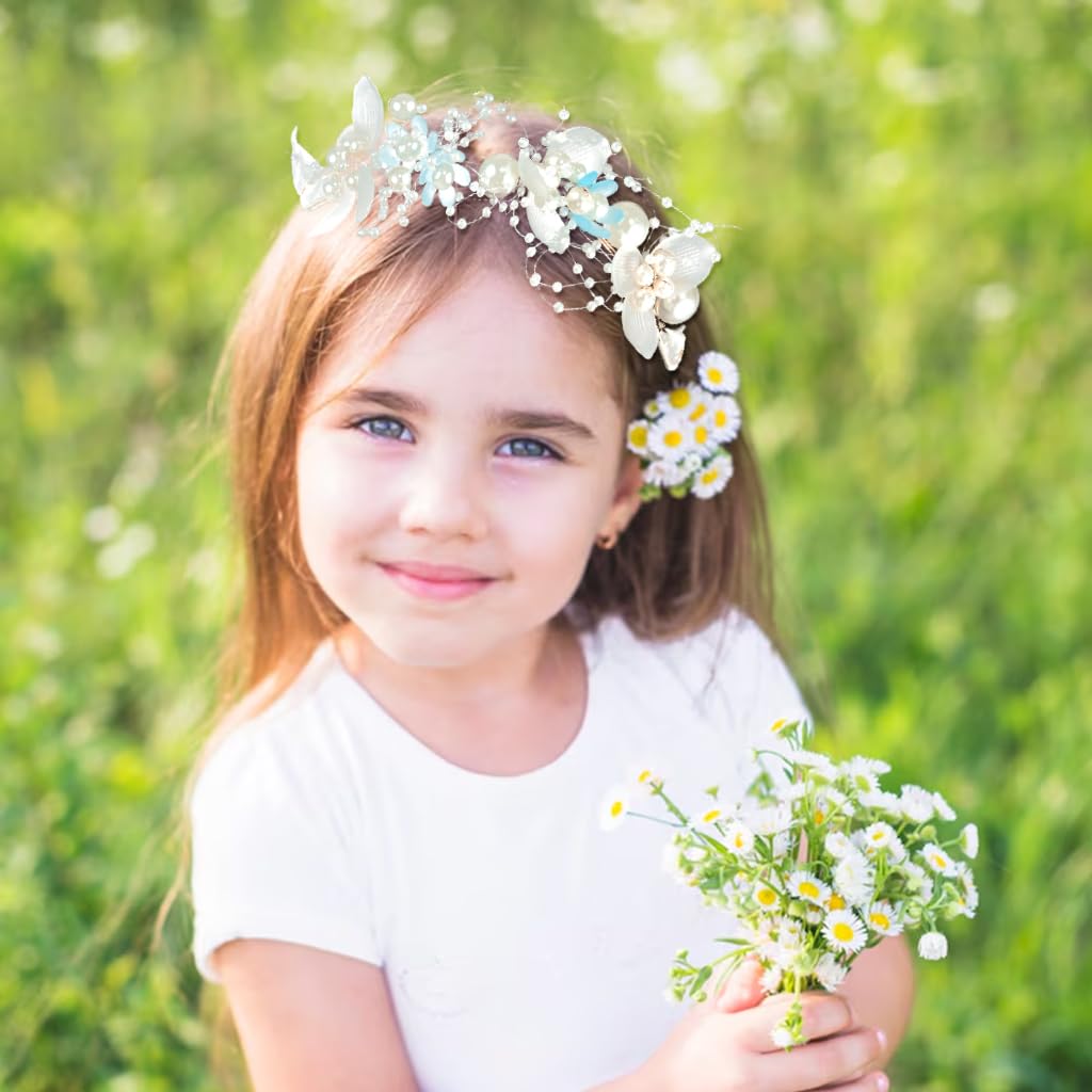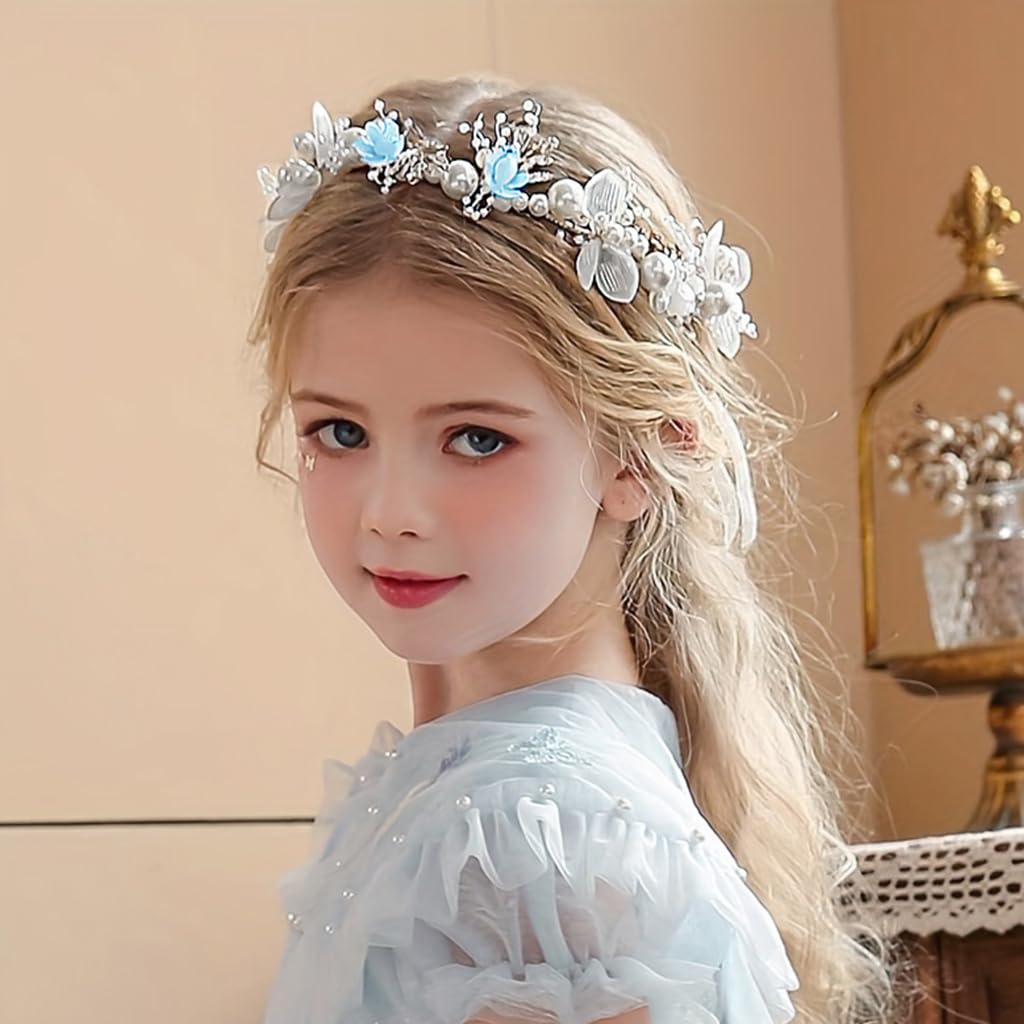 SANNIDHI® Pearl Tiara for Girls Kids 2-5 Years Old, Flower Crown for Girls, Ribbon Hairband Crowns for Girls, Princess Wedding Hair Accessories for Girls Toddlers Birthday, Party