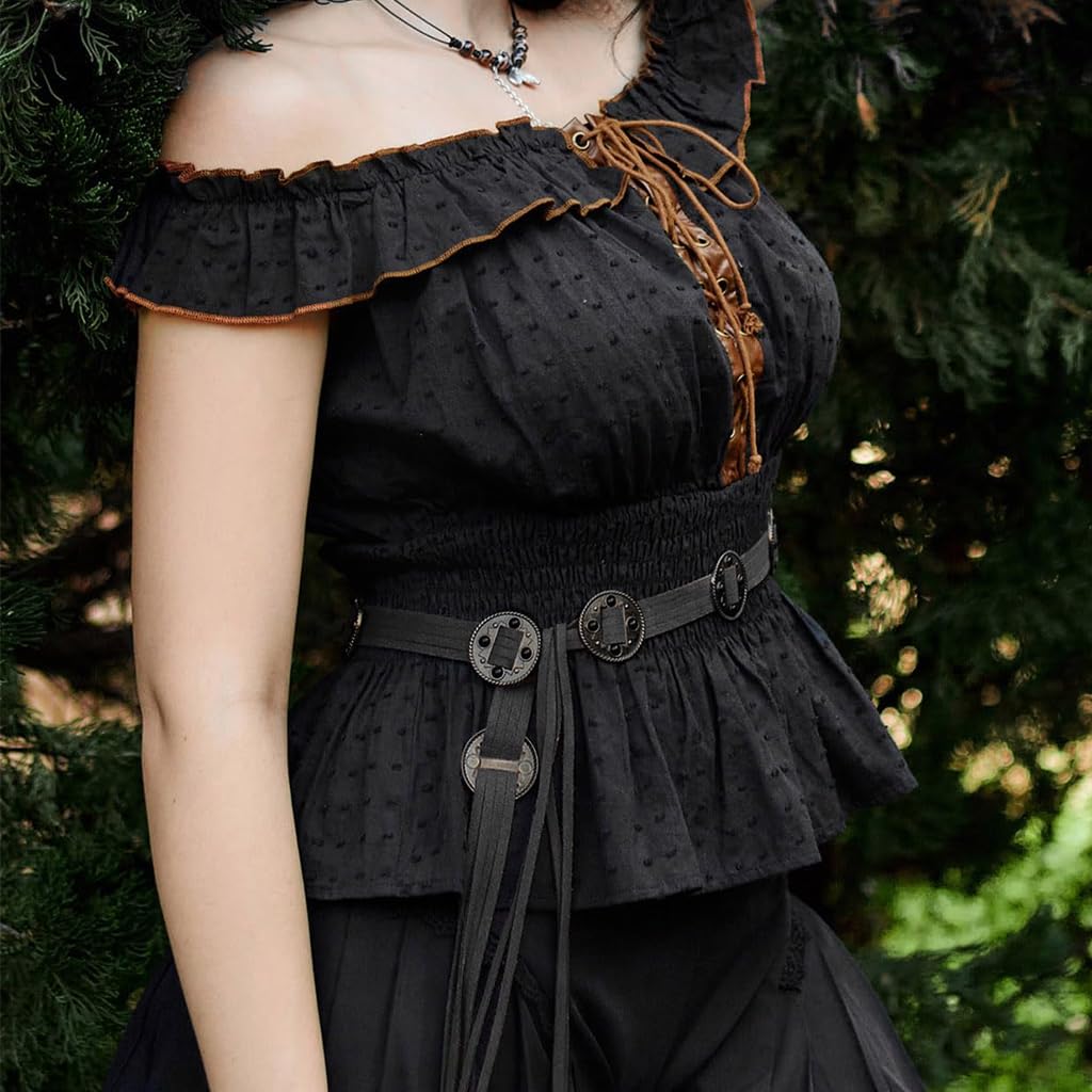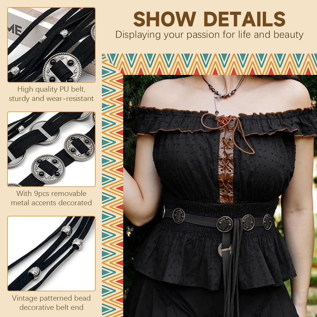 SANNIDHI® Waist Belt for Women Dresses Vintage Boho Tassel Belts Fashion Coin Charm Leather Saree Belt Stylish Y2K Accessories Adjustable Tie-Up Ladies Belts for Dress, Jeans, Skirts