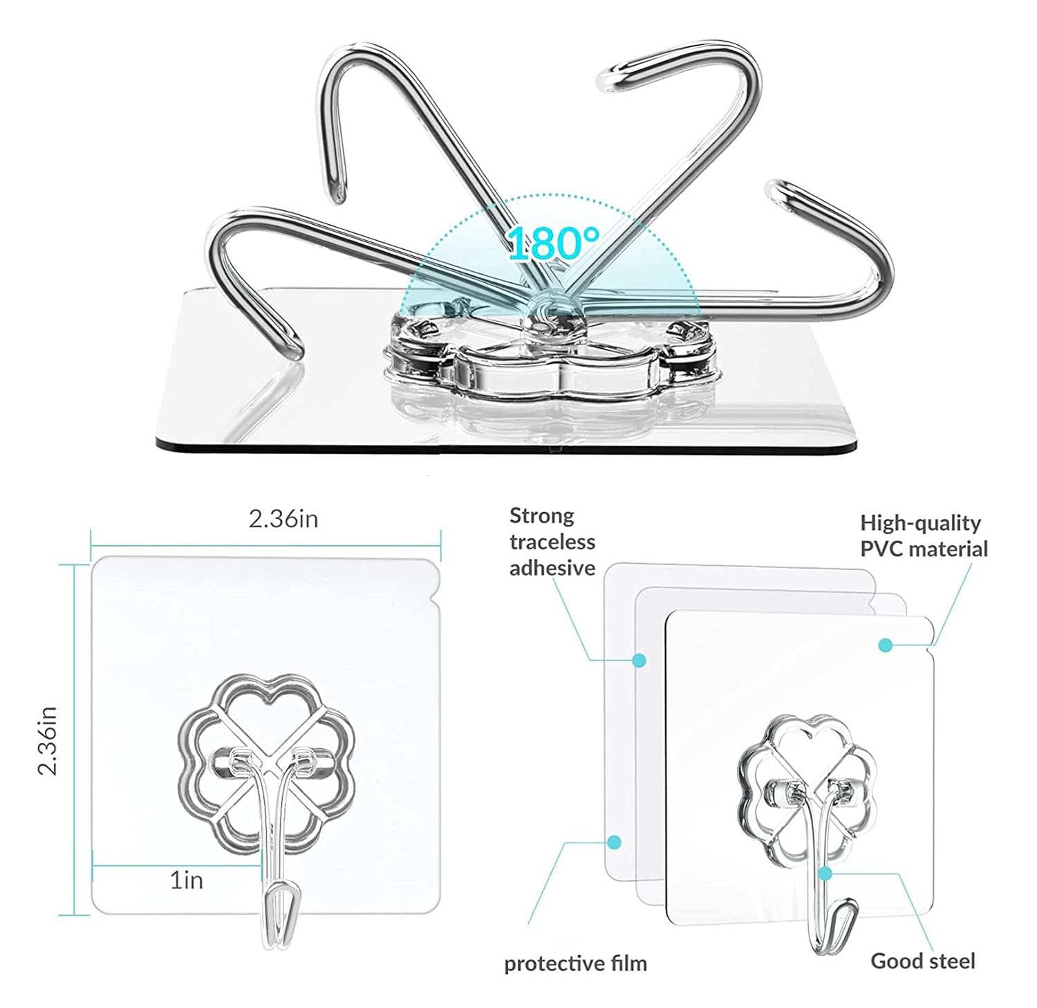 180° SWIVEL HOOK OPTION : These hanger hook variations include a swivel feature, allowing flexible hanging angles. Perfect for kitchen tools, bathroom accessories, and hanging decorations, this innovative design adds even more convenience to your home organization.