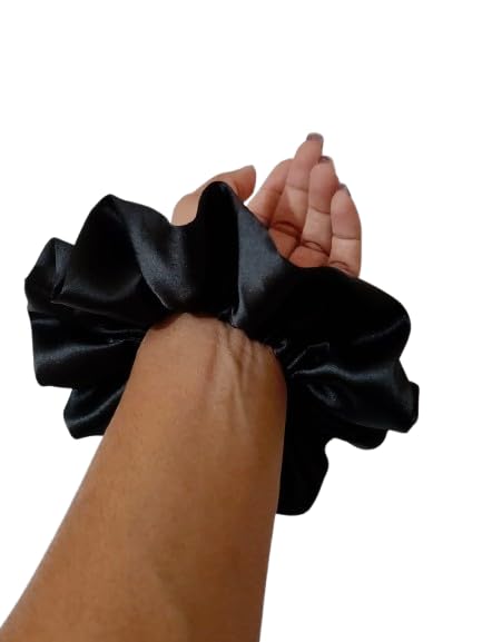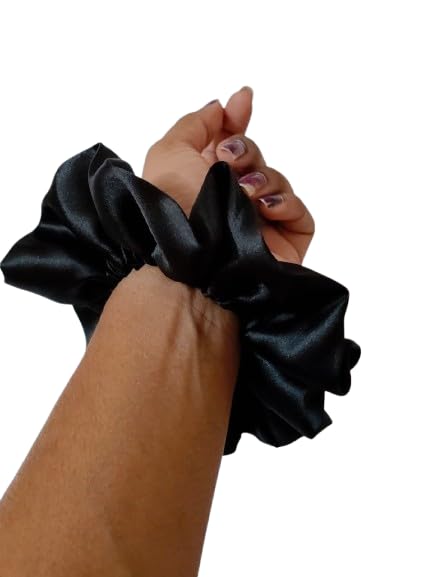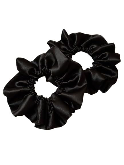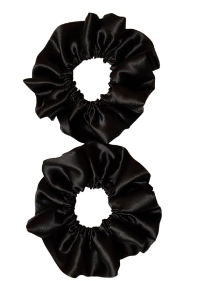 SATIN Hair Scrunchies Set, 2 Pieces, All Hair Types, Women’s Hair Accessories, Teen and Adult, Casual Style (BLACK SILK SATIN)
