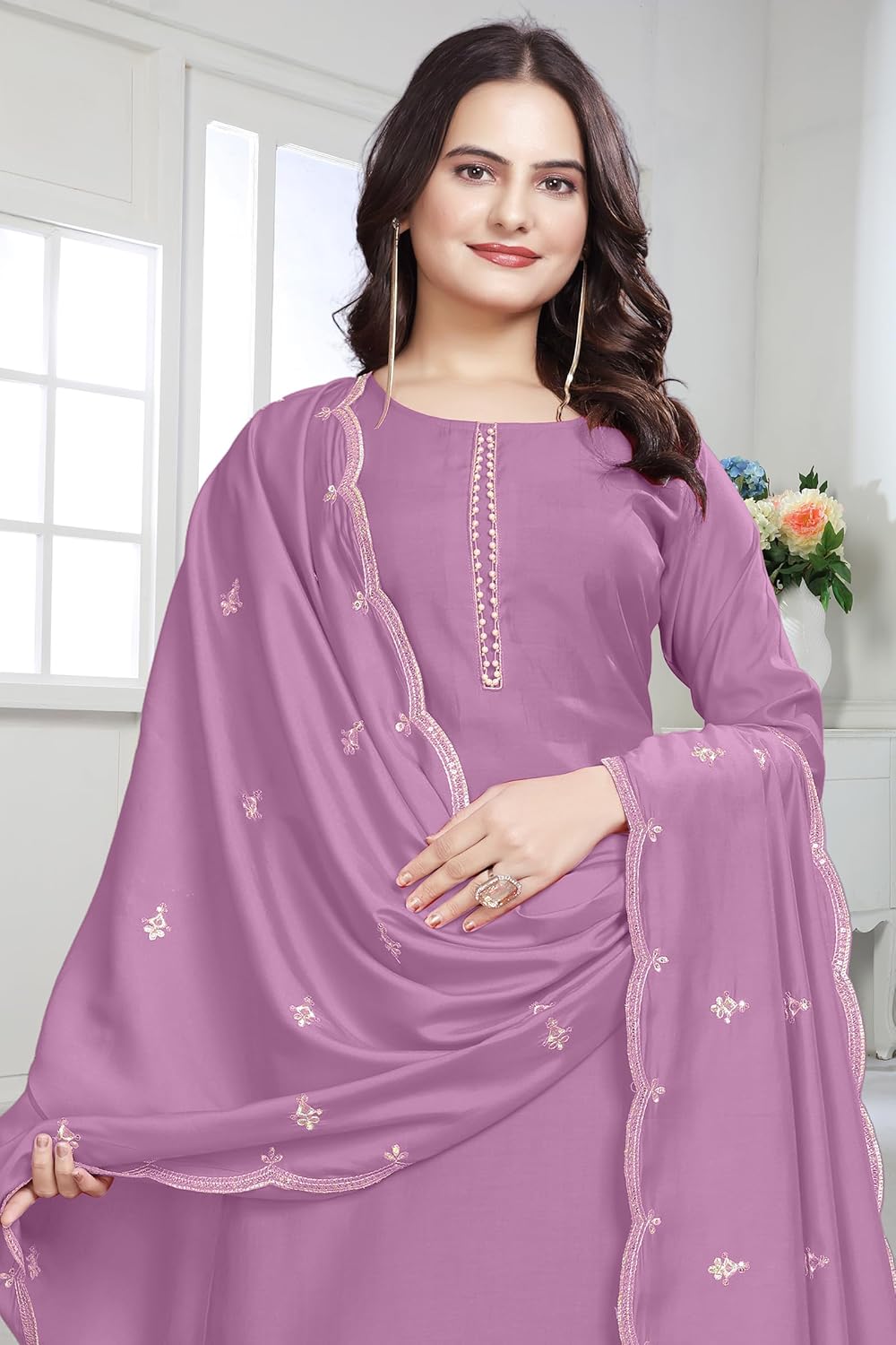 SATPURUSH Women’s Cotton Silk Round Neck 3/4th Sleeve Floral Embroidery Straight Kurta Salwar Suit Set with Pant – Elegant Traditional Wear for Festive Occasions