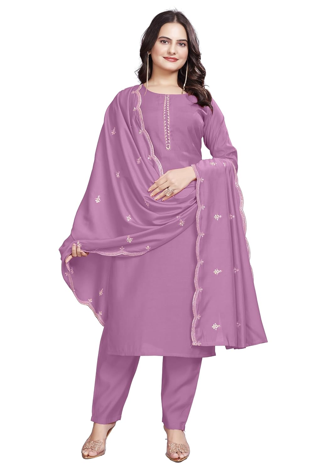 The SATPURUSH Women’s Cotton Silk Round Neck 3/4th Sleeve Floral Embroidery Straight Kurta Salwar Suit Set with Pant is a must-have addition to your wardrobe. The outfit’s design ensures that you not only look stunning but also feel comfortable and confident. Be it a wedding, a festive occasion, or a family gathering, this traditional yet modern suit set will make you the center of attention
