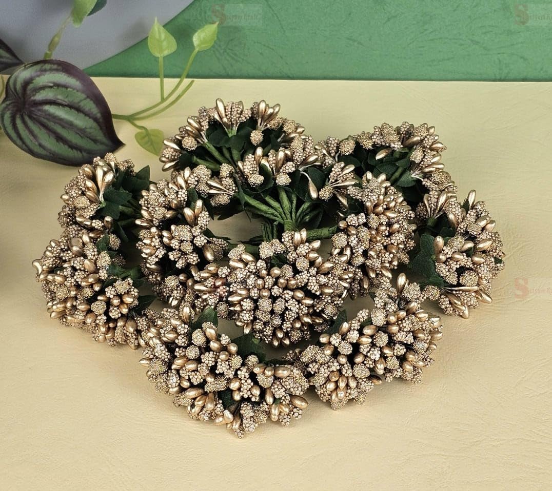 Package Includes : 12 bunches of Artificial Pollen Tiara jewellery making flowers / Material:- Fabric / Color:- Golden / Size: 9 cm x 8 cm (L x H)