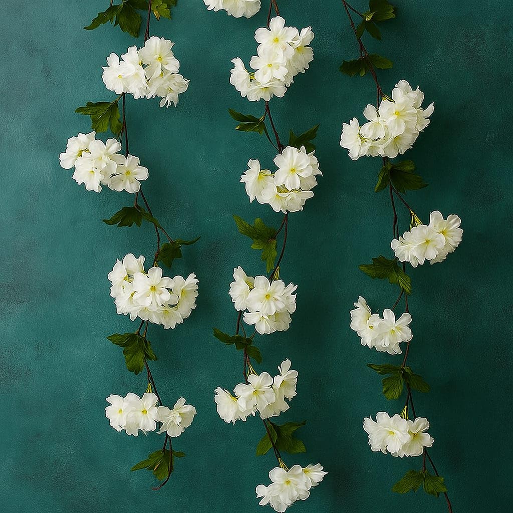 Package Includes: 2 Lines Of Artificial flowers Light weighted leaves. | SIZE : Approx 230 cm | Color : White | Washable: No | Material: Fabric Product color may slightly change due to photographic lightning.