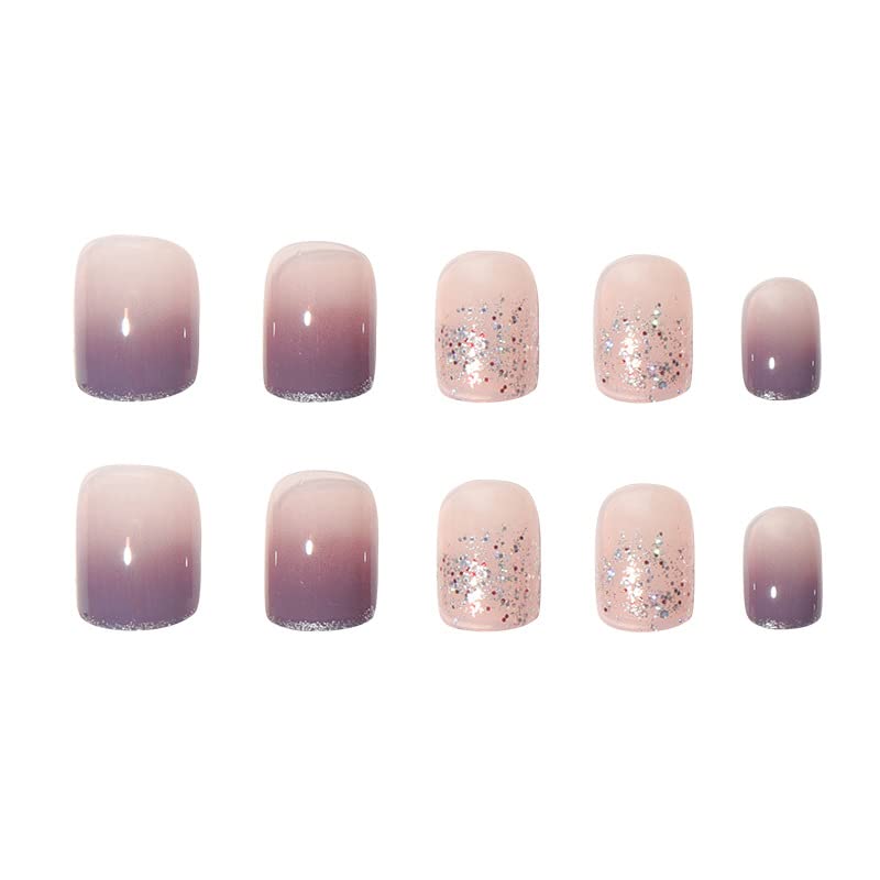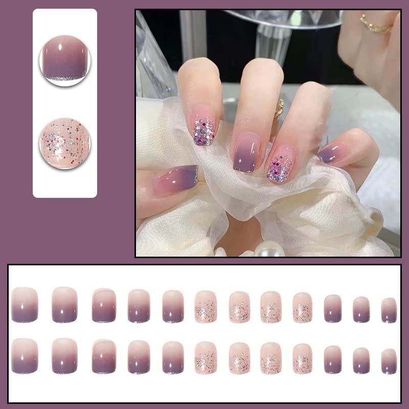 Secret Lives® acrylic press on nails designer artifical fake nails translucent purple color with glitter design 24 pieces set with manicure kit