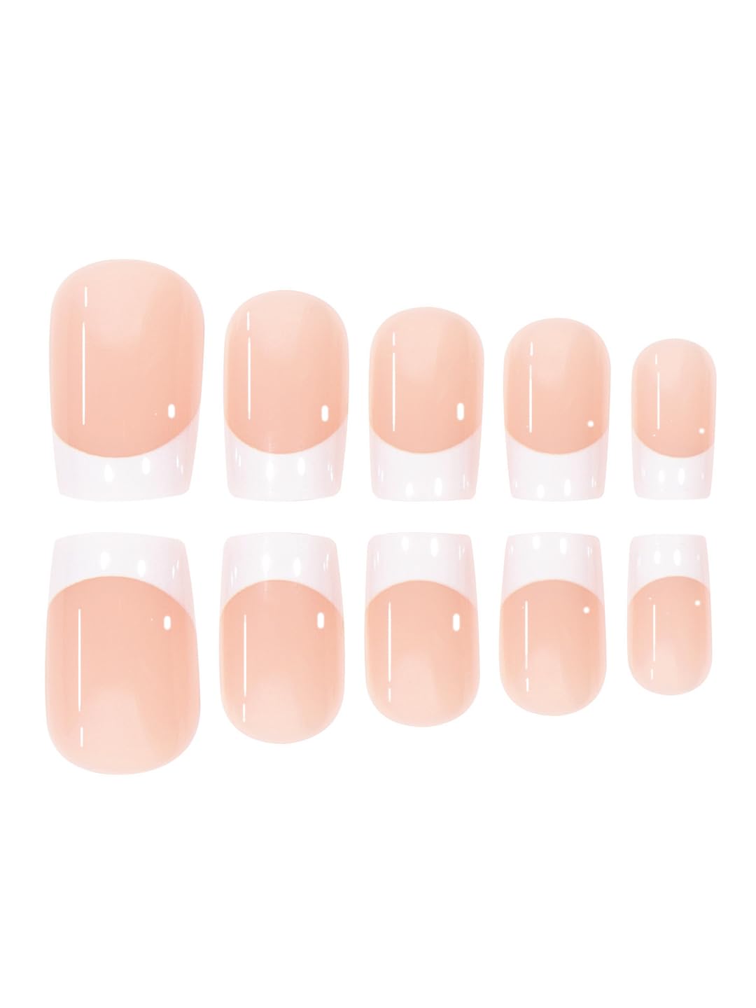 Secret Lives Glossy Reusable Artificial Translucent Peach Color with White Tips French Designer Luxury Fake False Press on Nails 24 pieces Set with Kit