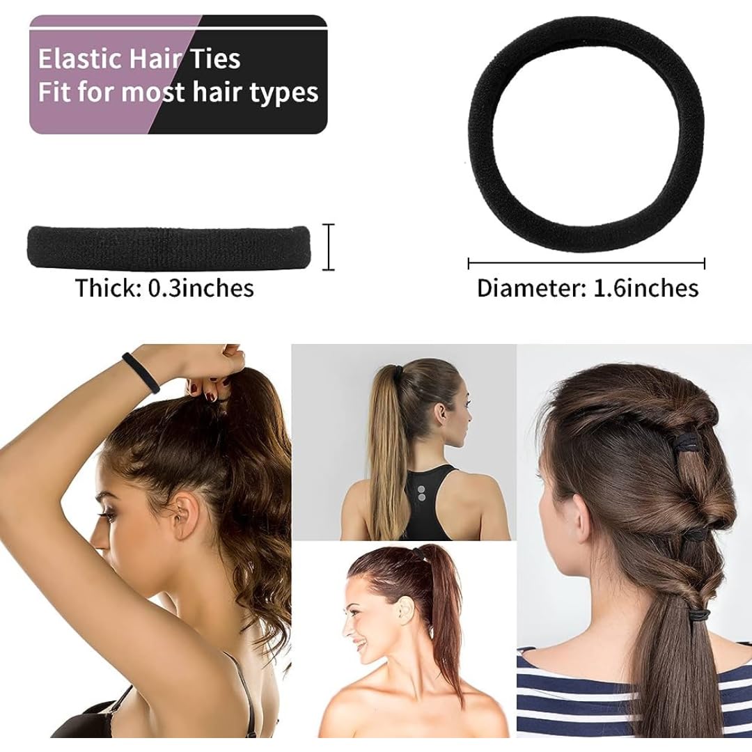 Seeotwo Black Hair Ties Soft Premium Elastic No Damage Seamless Ouchless Soft Stretchable Non-Slip Cotton Rubber Bands, Thick Thin Hair, Ponytail Holders, Scrunchy, Men, Women, Boys, Girls (20)