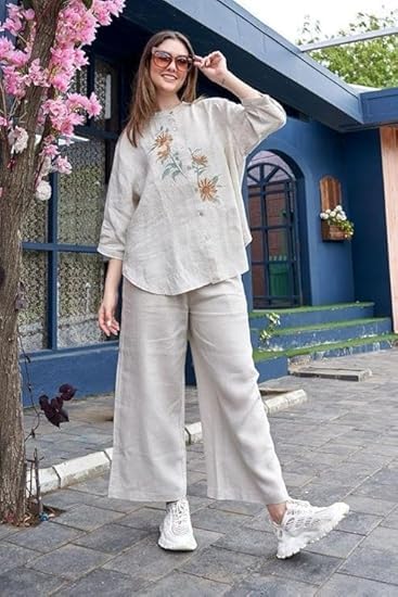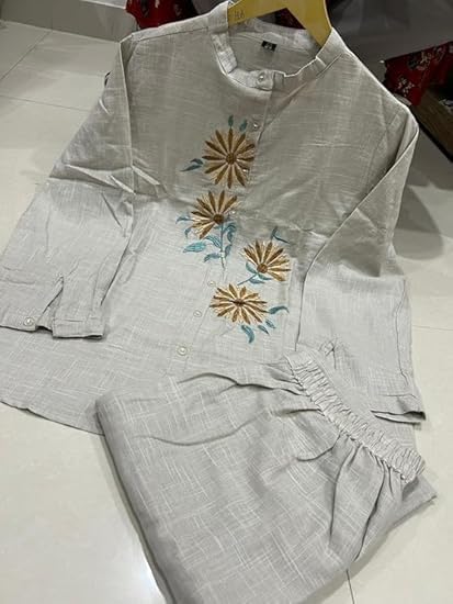 Fabric: Made from slub cotton, offering a soft and airy feel.Design: Often includes a kurta-style top with V-neck or collar and matching pants or palazzos.Fit: Available in various fits, from relaxed to tailored, catering to different style preferences.Details: May feature embroidery, patchwork, or button enclosures for added elegance.Versatility: Suitable for casual outings, workwear, or festive occasions, depending on the design.