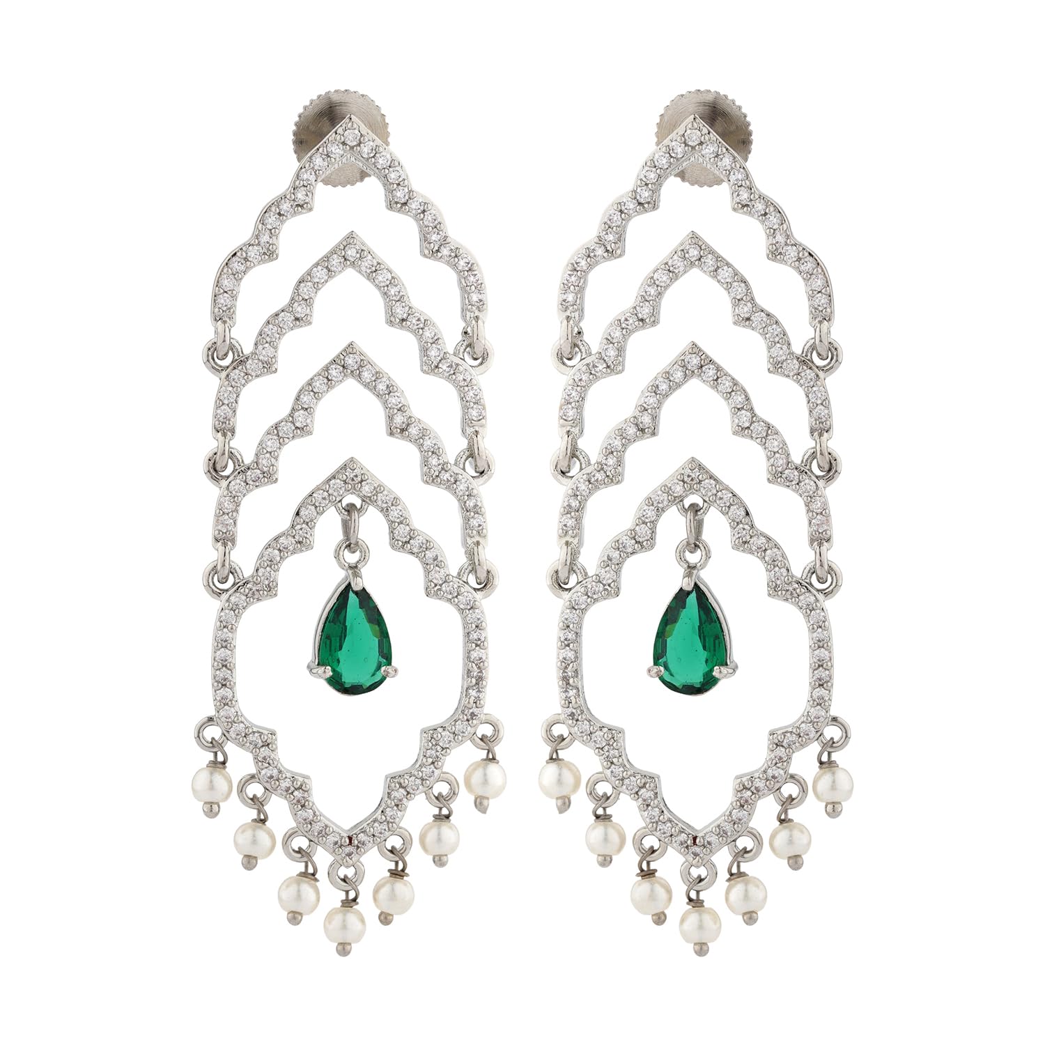 Shahi Dwar Leher Silver Dangler Earrings For Women, Festive, Wedding, Royal, Cocktail, American Diamond, Gift for Women & Girls, Womens Gift