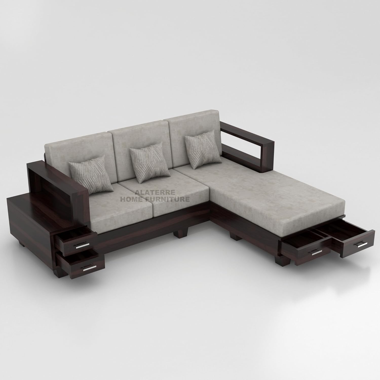 Sheesham Wood L Shape Sofa Set for Living Room || Home Furniture Sofa || Wooden Sofa Set Furniture | Without Pillow || Foldable Sofa with Side Box Storage & Cushion || Sofa4 Seater, Walnut Finish