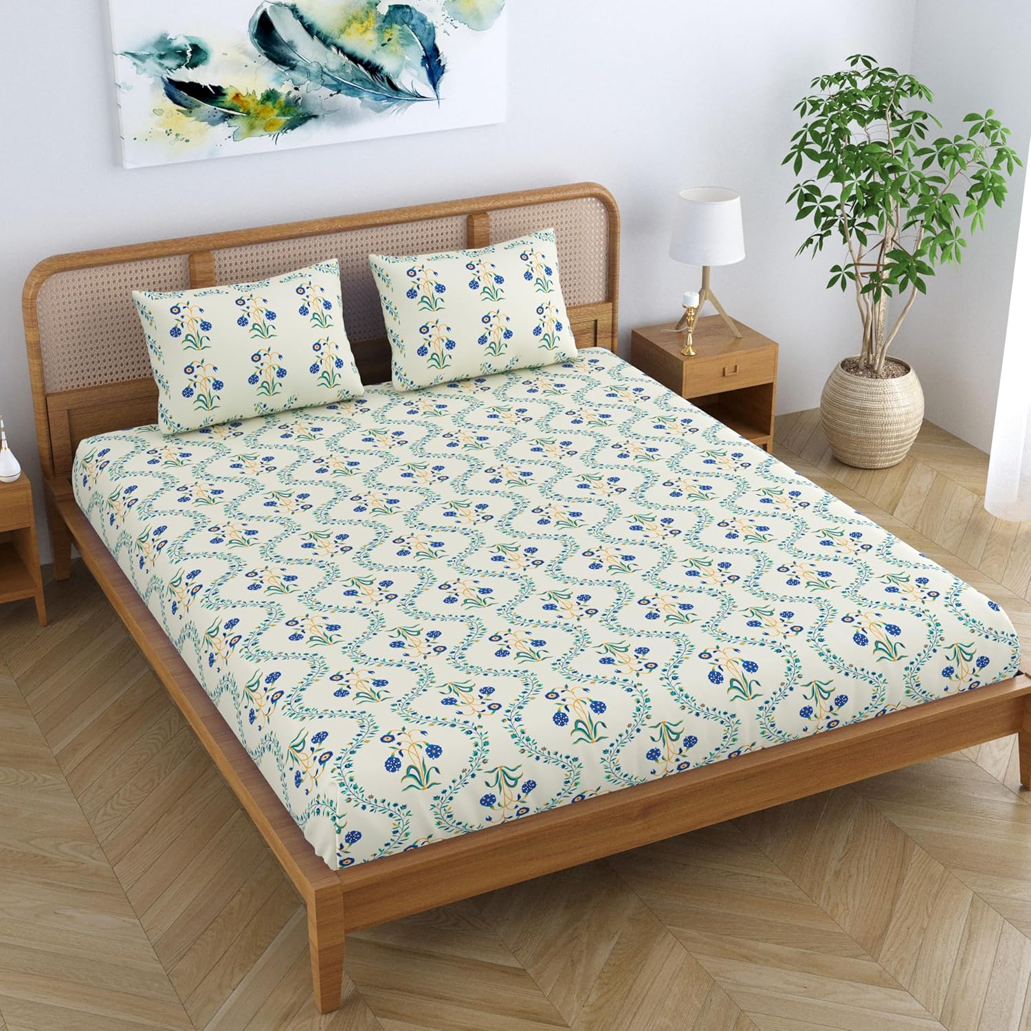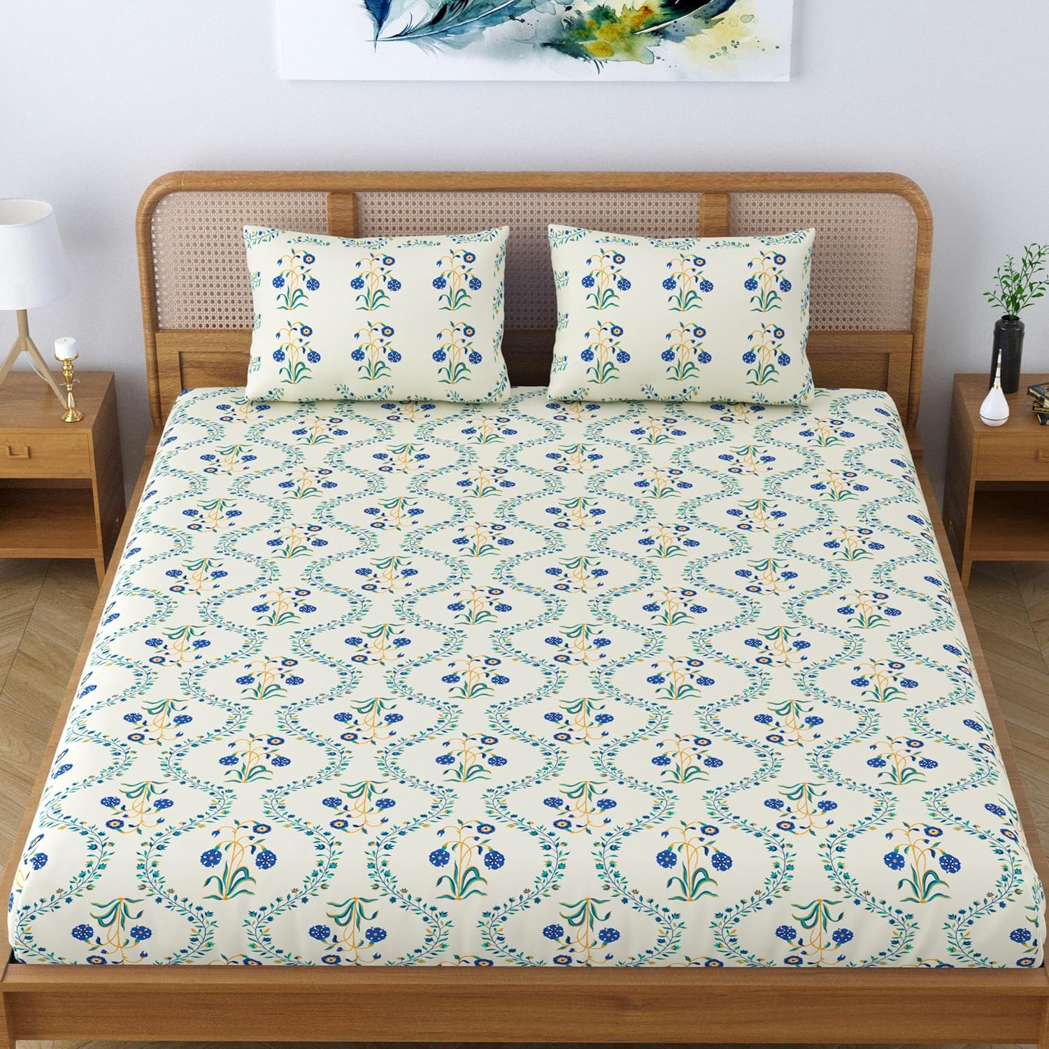 Traditional Jaipuri Print: The vibrant yellow lily floral print adds a touch of traditional charm to your bedroom decor.