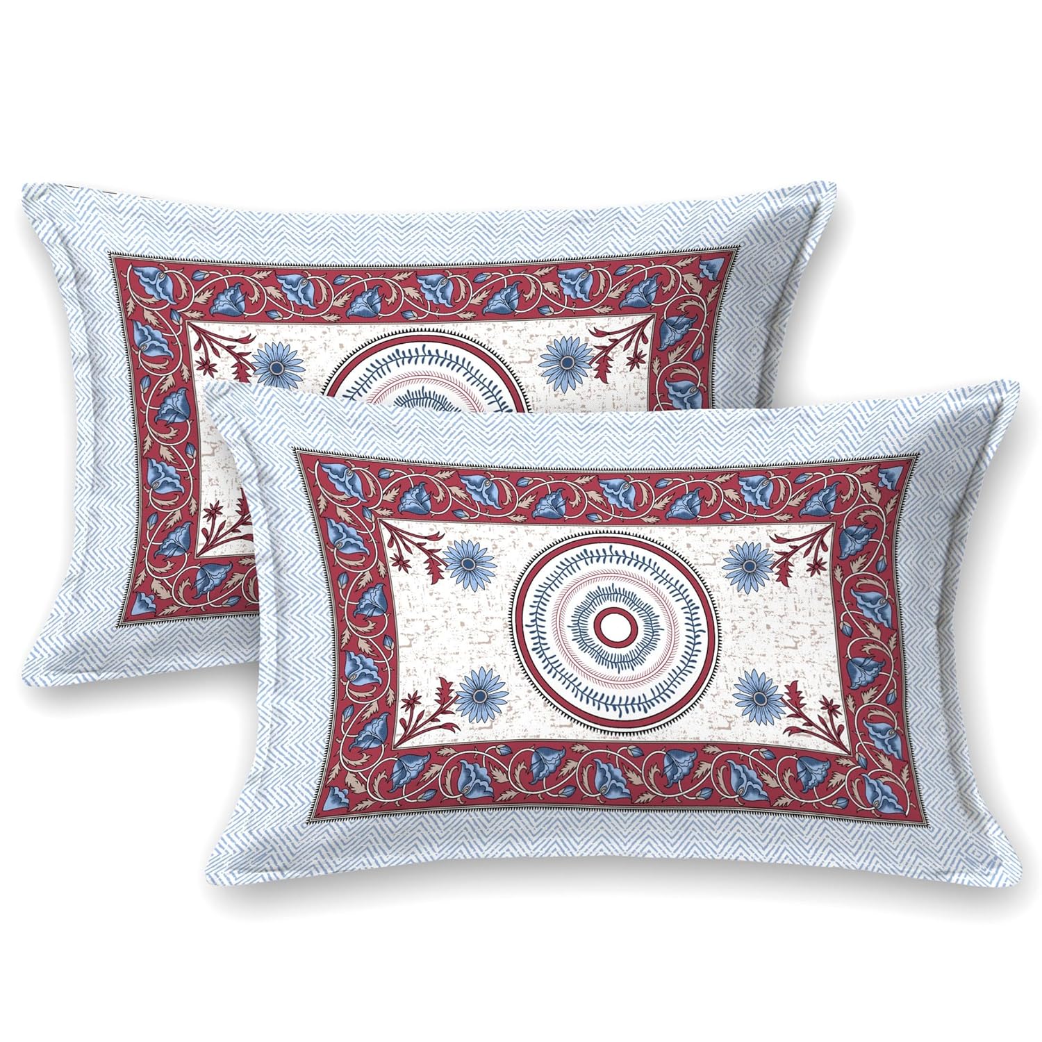 Traditional Jaipuri Design – Mandala-inspired floral print in elegant Rust Blue tones, perfect for elevating your bedroom décor.