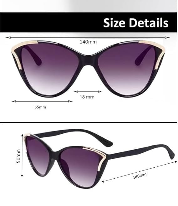 Sheomy Combo Pack Of 2 Sunglasses Cat Eye Black Goggles Inspired From Priyanka Chopra Non Polarized Sunglasses For Women’s Mc-781, Medium