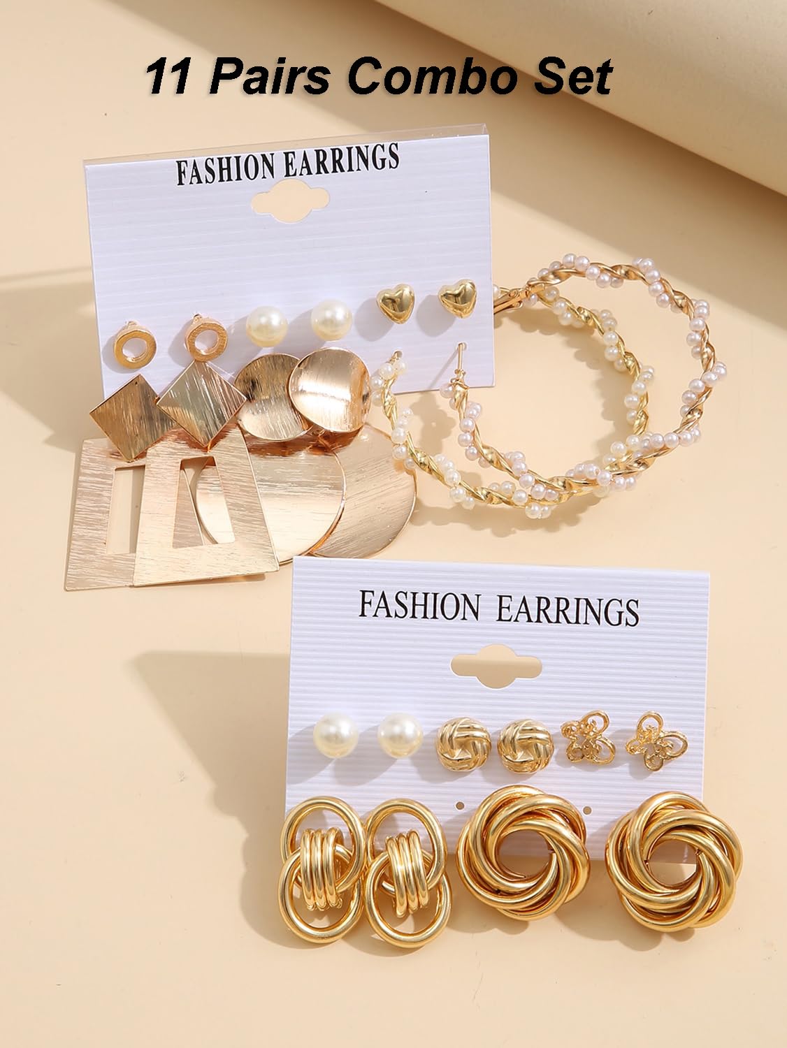 Shining Diva Fashion 11 Pairs Combo Set Celebrity Inspired Latest Trendy Stylish Gold Plated Geometric Twist Pearl Hoop Stud Dangle Earrings for Women and Girls