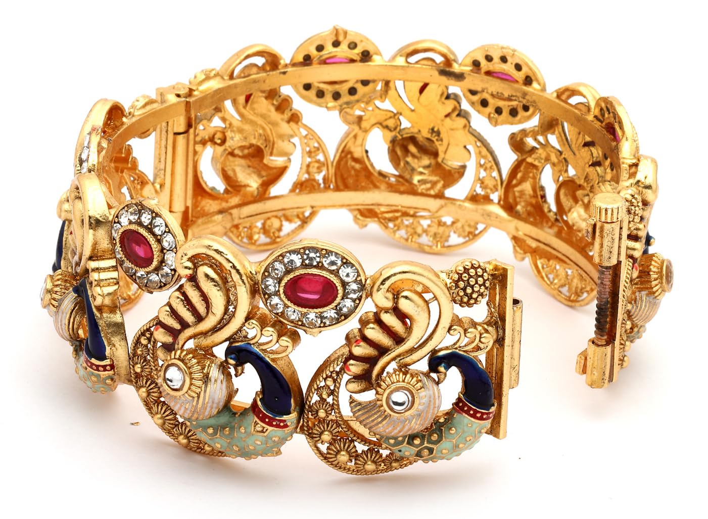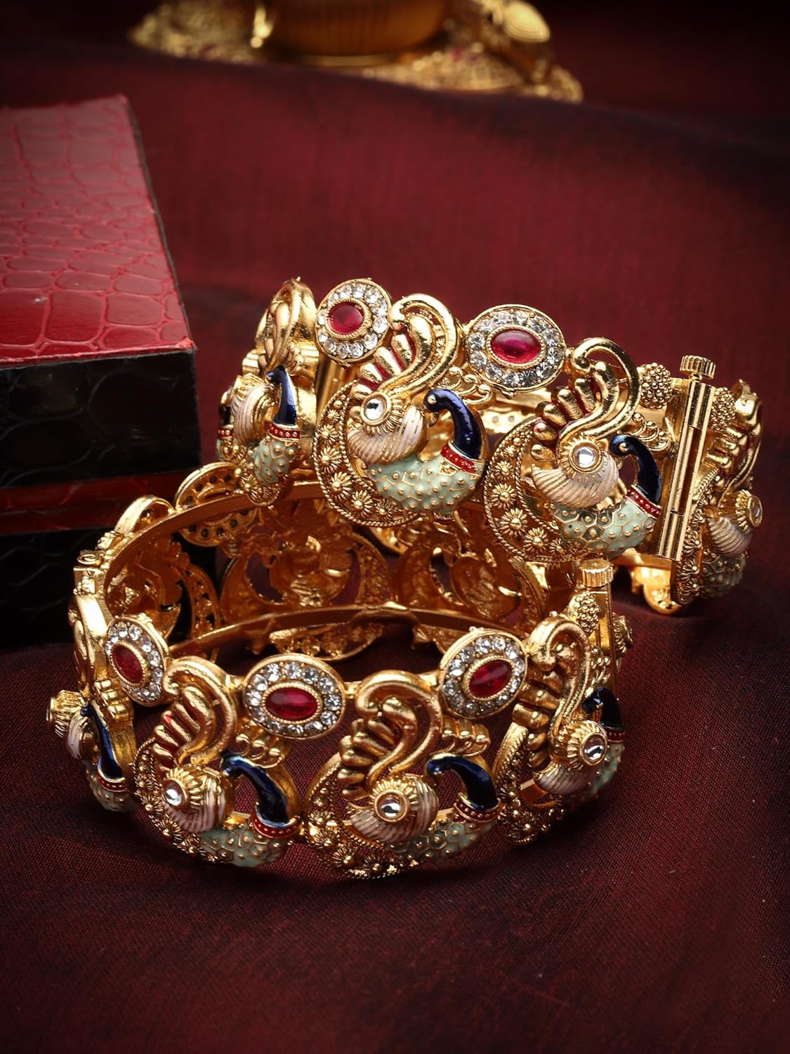Shining Diva Fashion 18k Gold Plated Peacock Jewellery Bangles for Women | Set of 2 Bangles Set | Latest Stylish Traditional Kada Bangles | Just Like Real Gold Jewellery