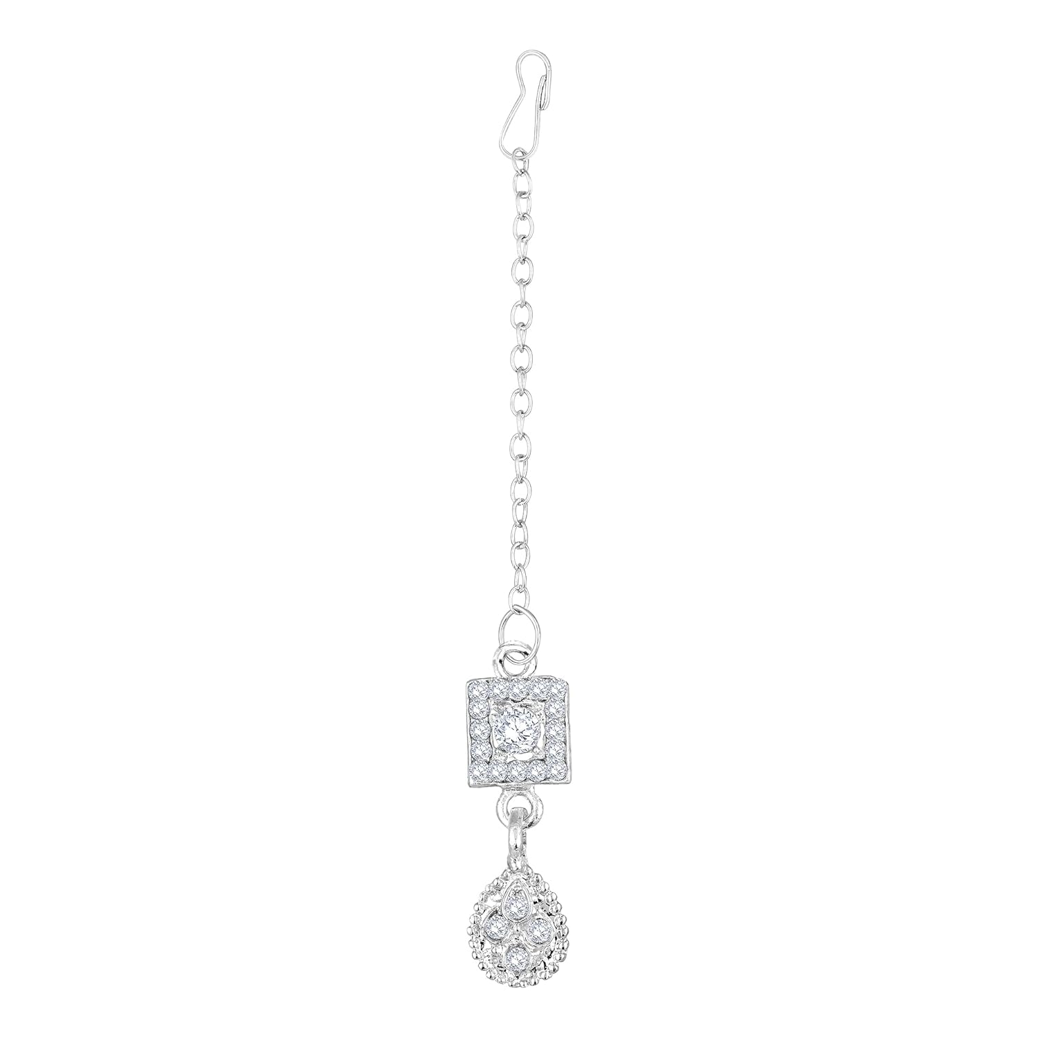 Shining diva presents this latest american diamond silver plated jewellery set stylish necklace set for women. This casual, festival or wedding party wear necklace set for women with maang tikka and earrings is made of fine quality material which looks stylish and goes perfect with any attire. This traditional choker necklace set is perfectly suited for wedding or party wear. Shining diva is a well known brand across fashion jewellery sector. shining diva has huge collection of latest statement haram necklace jewellery, traditional necklace set, south indian type Lakshmi temple pendant set and other jewellery accessories which includes fancy bangles for women, wedding bangles, ear cuffs, traditional bangles kada, neck choker, fashion party wear necklace for girls and jhumki jhumka earrings. shining diva is pioneer of imitation jewellery and design pearl necklace set for women and american diamond hangings party wear stylish earrings. shining diva fashion and traditional jewellery give true value for your money. buy shining diva trendy artificial jewellery from amazon in offer. these are also ideal for special birthday gifts for girls, wife, love valentine gifts for girlfriend, wedding gifts and anniversary gifts.