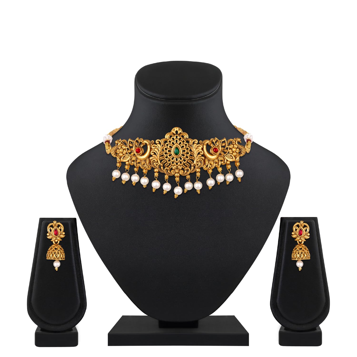 Shining Diva Fashion Latest Stylish Design Fancy Pearl Choker Traditional Necklace Jewellery Set for Women (rrsd16485s)