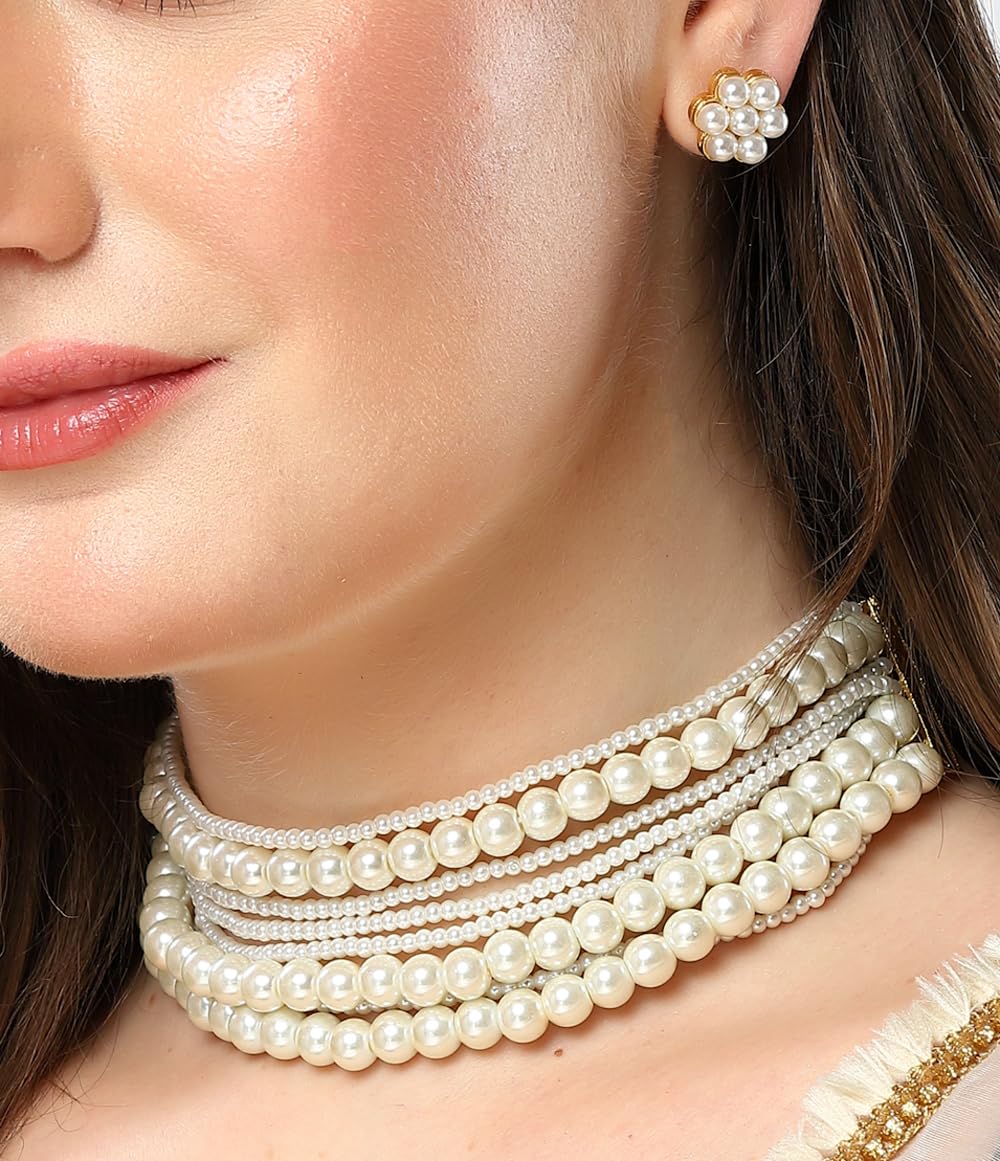 Shining Diva Fashion Latest Stylish Design Fancy Pearl Necklace Jewellery Set for Women (15880s)
