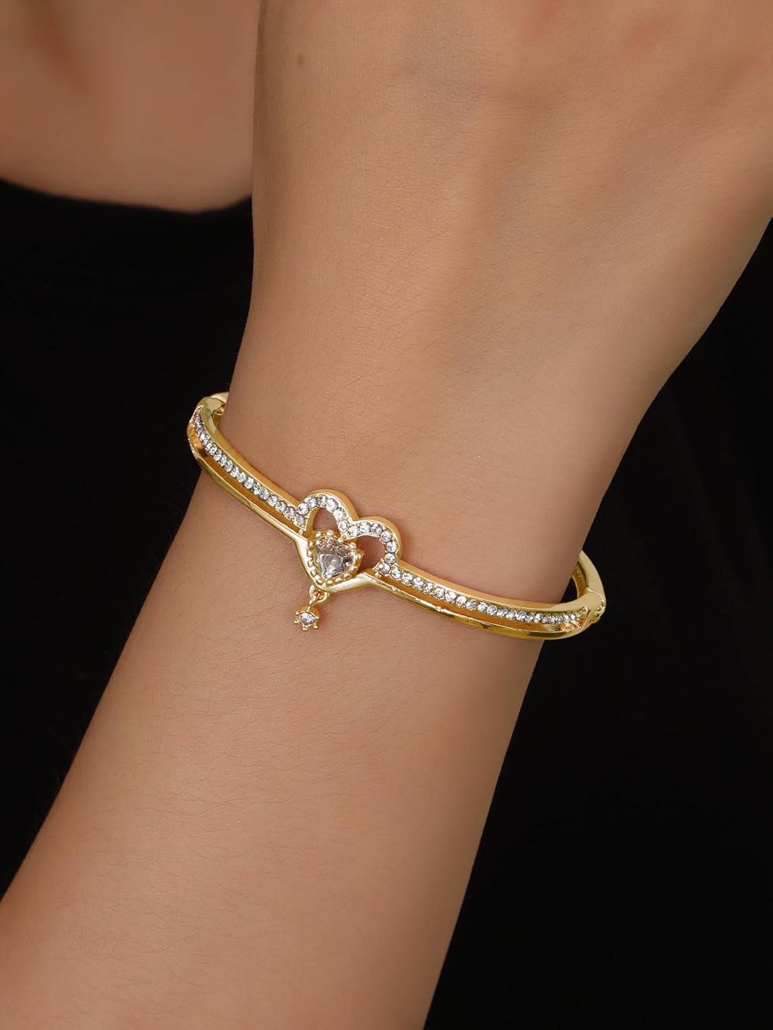 Shining Diva Fashion Latest Stylish Gold Plated Crystal Bangle Bracelet for Women and Girls