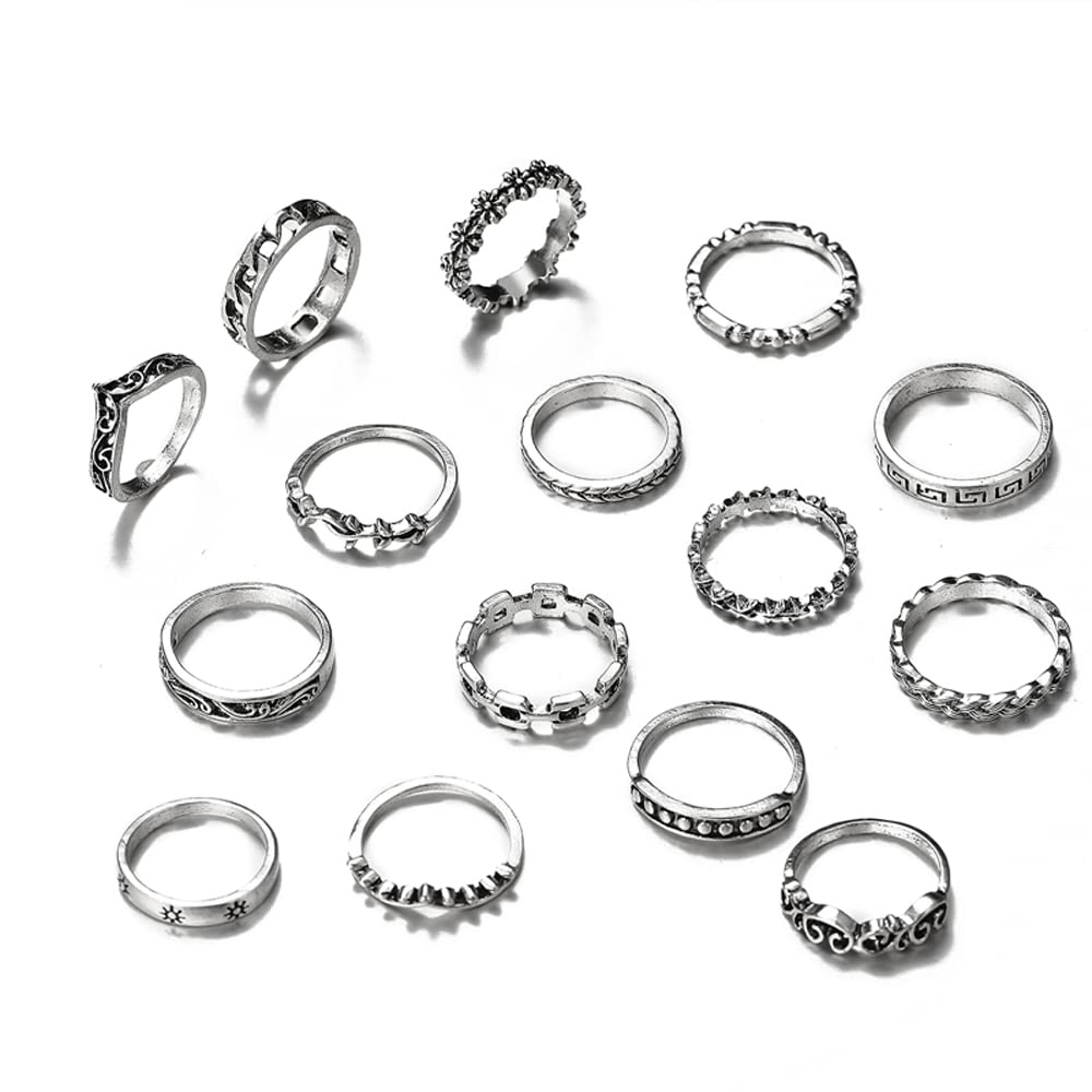Shining Diva Fashion Latest Stylish Metal Boho Midi Finger Rings for Women and Girls – Set of 15 (D12981r), Silver