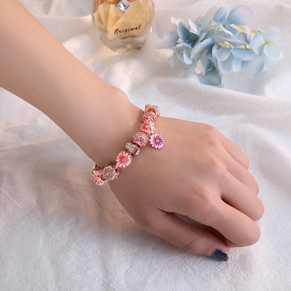 Shining Diva Fashion Latest Stylish Pandora Crystal Diamonds Charms Rose Gold Gift Bracelet for Women and Girls