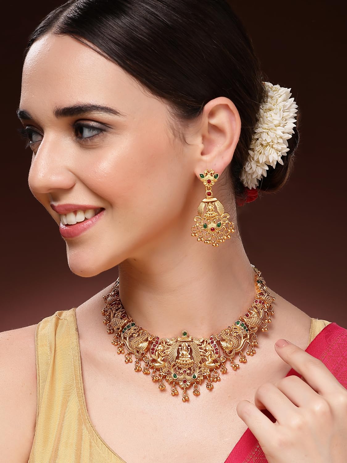 Shining Diva Fashion Necklace Jewellery Set for Women Latest Stylish Design Fancy Choker Traditional Temple (16973s)